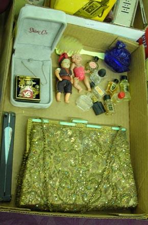 Lot Of Misc. Collectibles - Mini Perfume Bottles, 2 Celluloid Dolls, Gold Purse, Etc.
