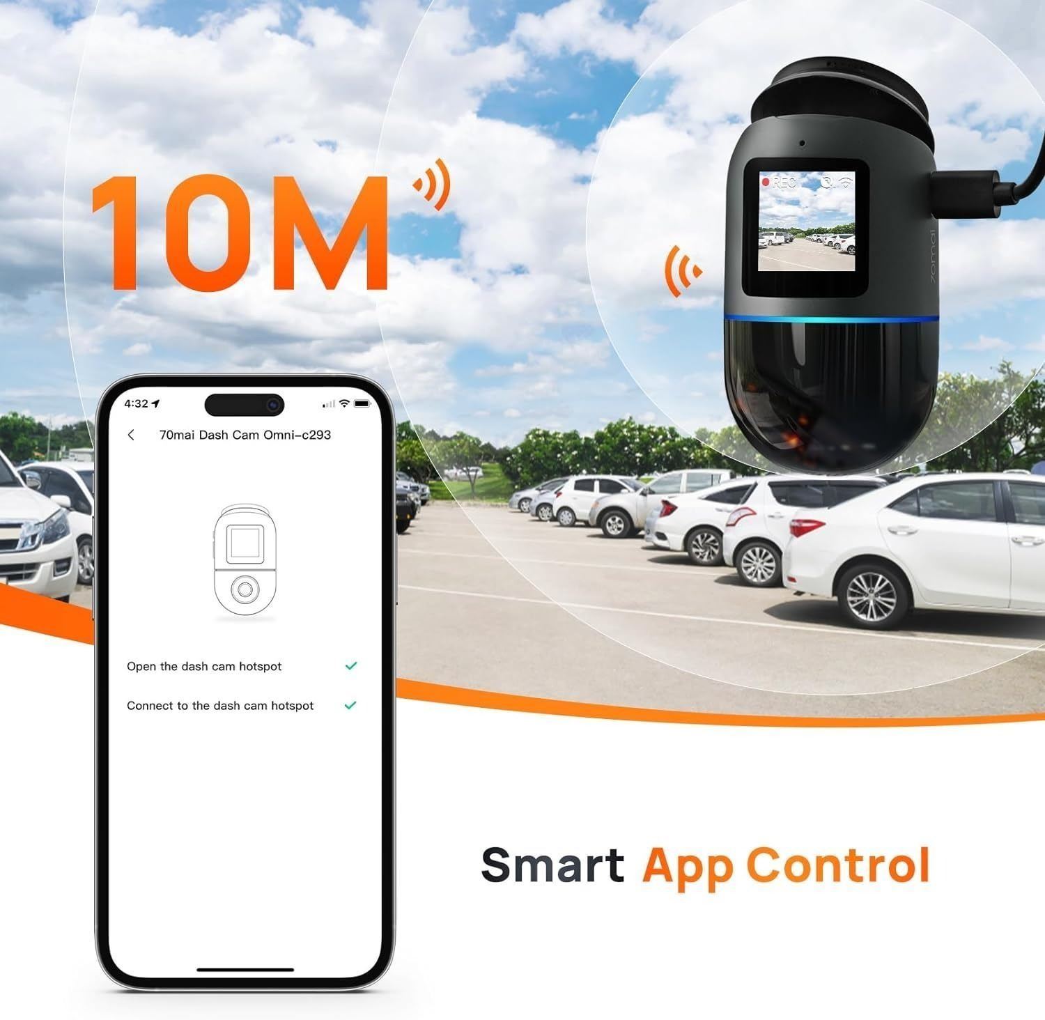 -360° Rotating, Superior Night Vision, Built-in 128GB eMMC Storage, Time-Lapse Recording, 24H Parking Mode, AI Motion Detection, Collison Detection, 1080P Full HD, Built-in GPS, App Control