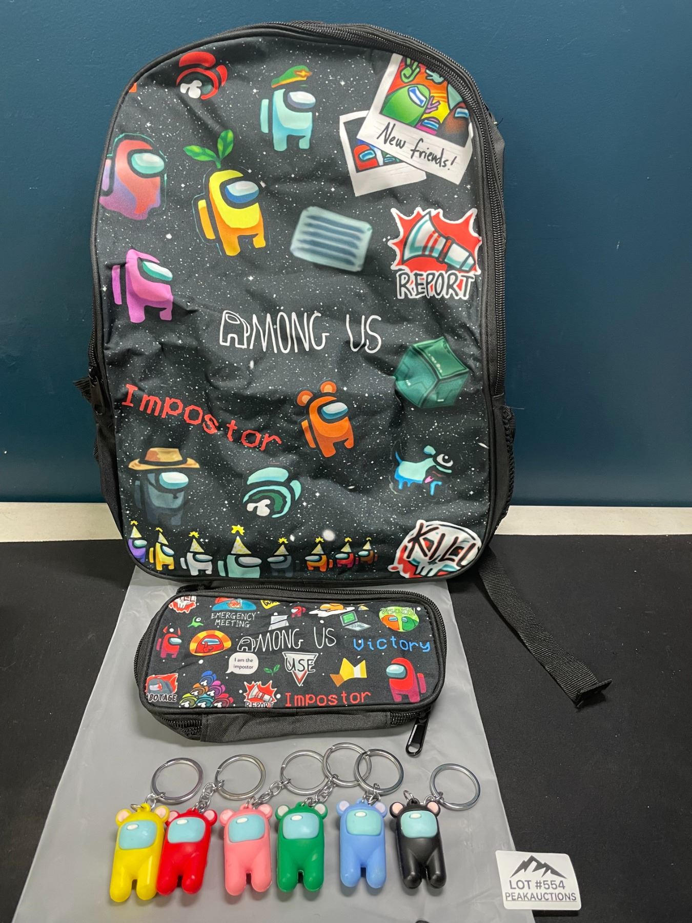 Lot of 1 Among Us Backpack w/ Pencil Pouch & Keychain Figures - Brand New!