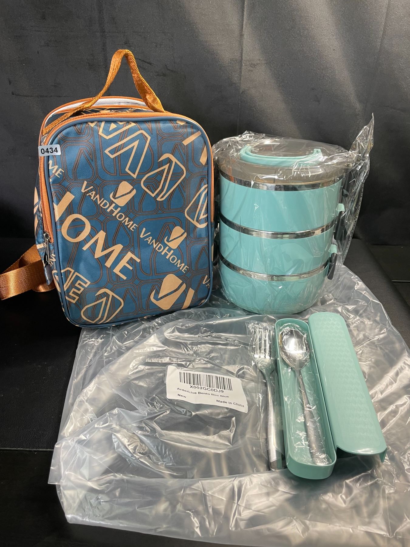 Lot of 1 Arderlive 71oz Stackable Blue Bento Box Lunch Container Set w/ Insulated Bag  - Brand New!