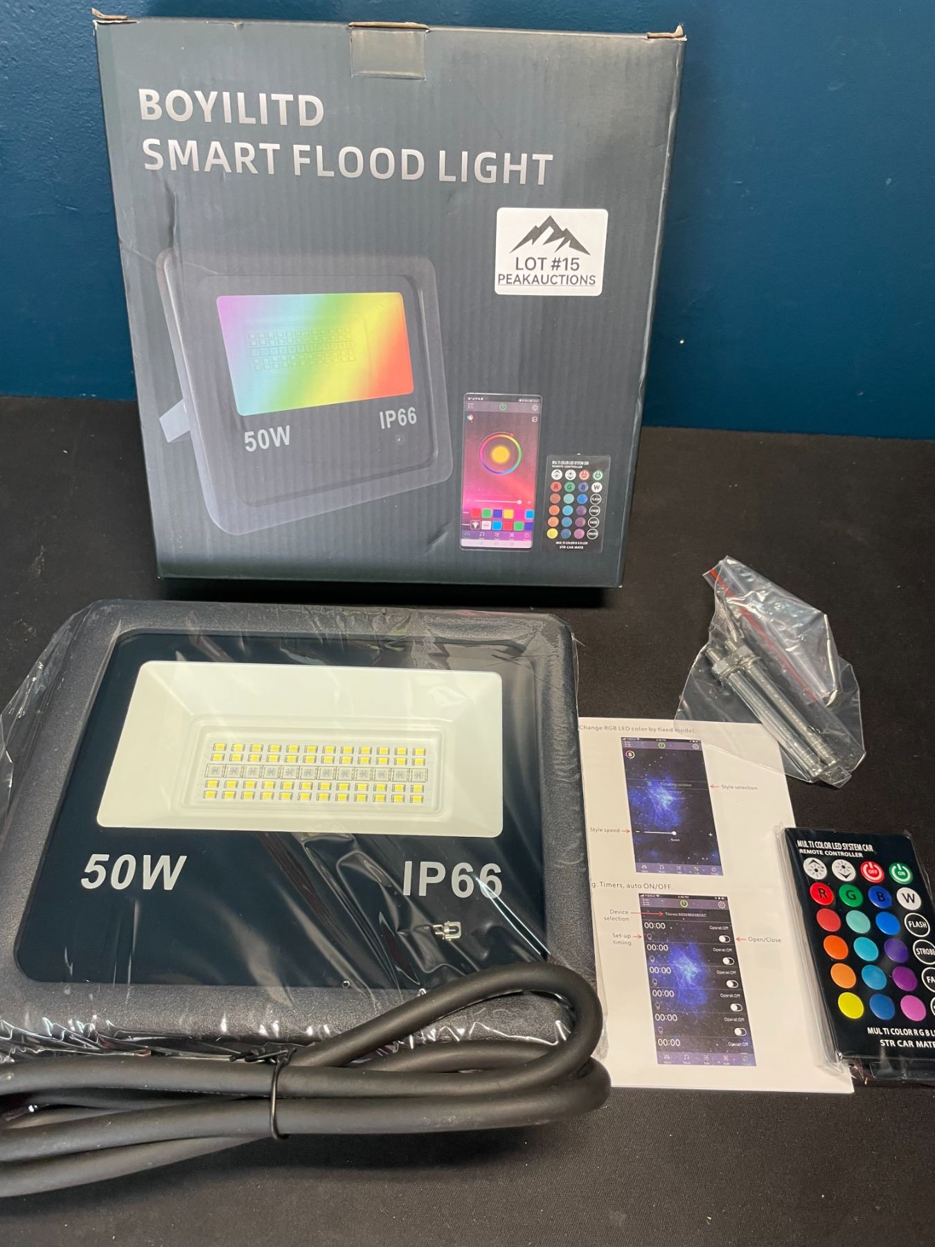 Lot of 1 BOYILITD 50W RGB LED Flood Light w/ Smart APP Control & Remote Control - Colour Changing