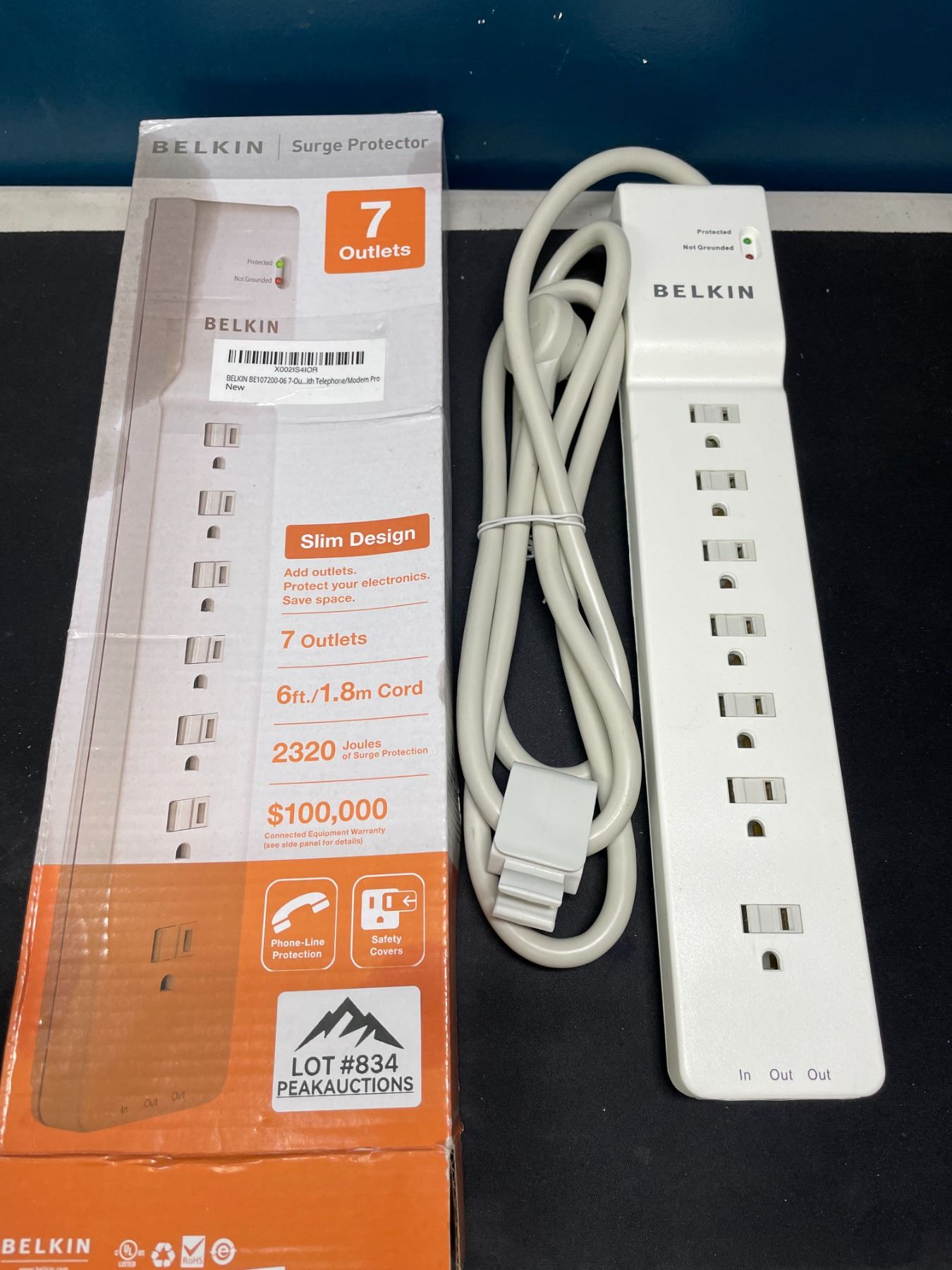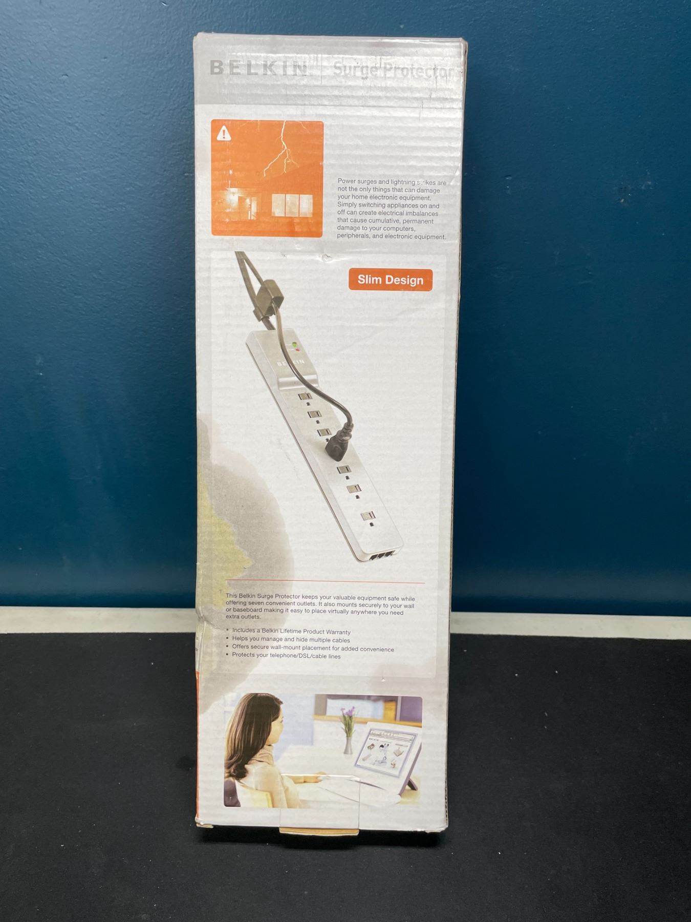 Lot of 1 Belkin 7-Outlet Slim Design Power Bar/Surge Protector