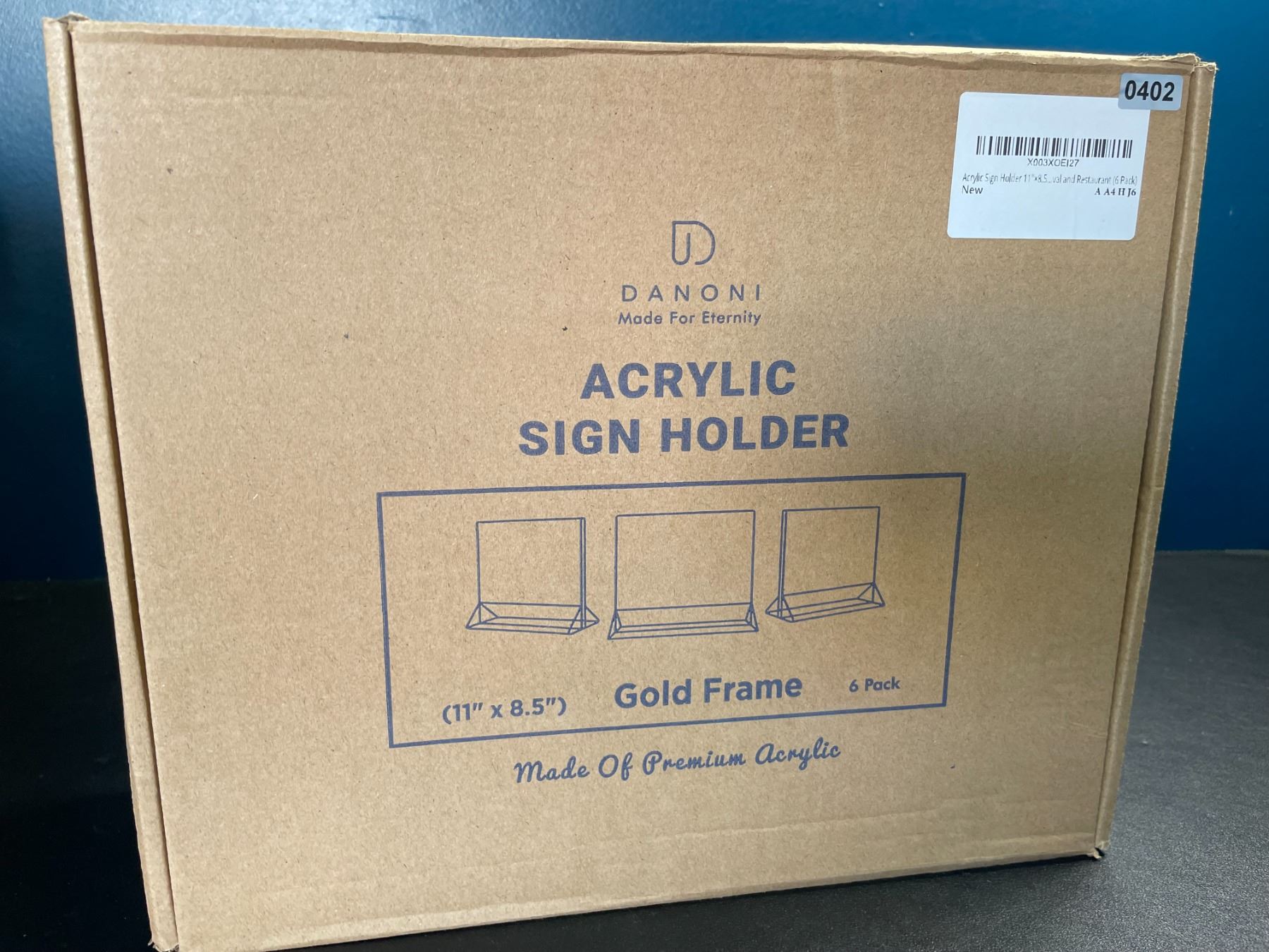 Lot of 1 Box of Danoni Acrylic Sign Holders - Gold - 11 x 8.5  - 6 Pack - Brand New
