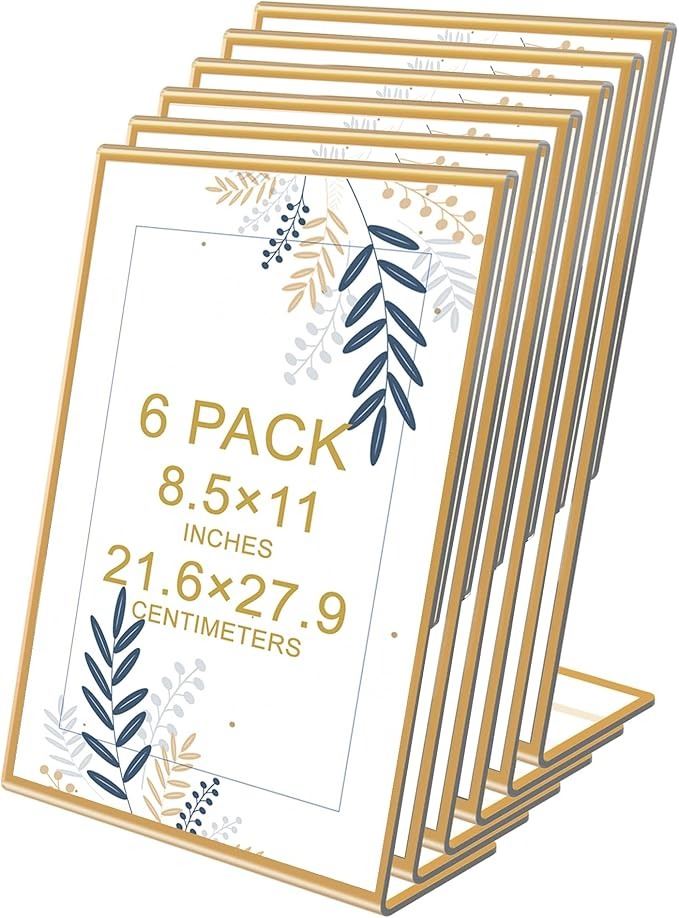 Lot of 1 Box of Danoni Acrylic Sign Holders - Gold - 11 x 8.5" - 6 Pack - Brand New