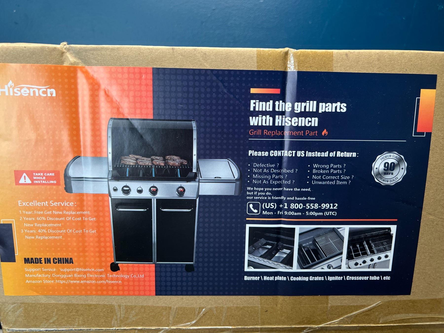 Lot of 1 Box of Hisencn BBQ Grill Replacement Parts - Burner/Heat Plate/Cooking Grates/Igniter/ etc.