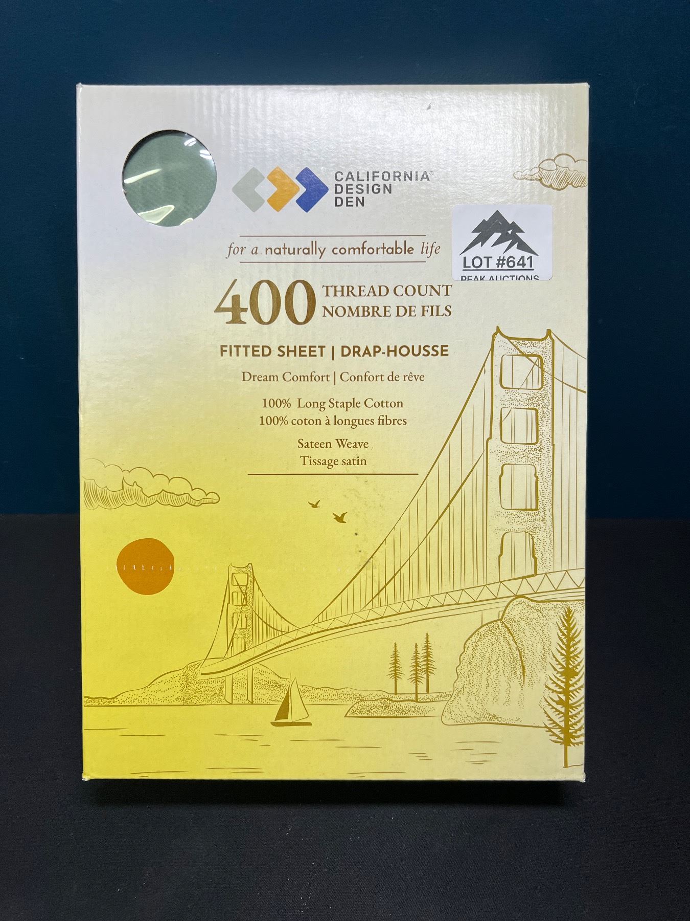 Lot of 1 California Design 400Thread Count Sage Green Queen Fitted Sheet