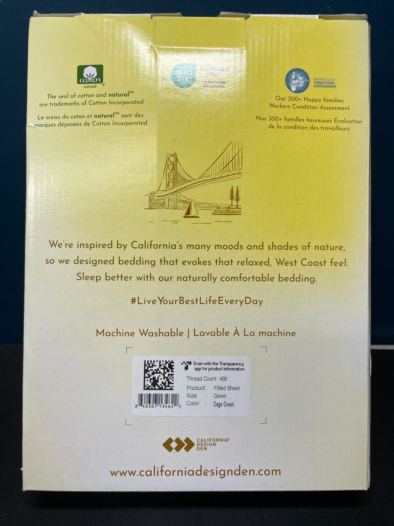 Lot of 1 California Design Den 400 Thread Count Fitted Sheet - Queen Size - Sage Green