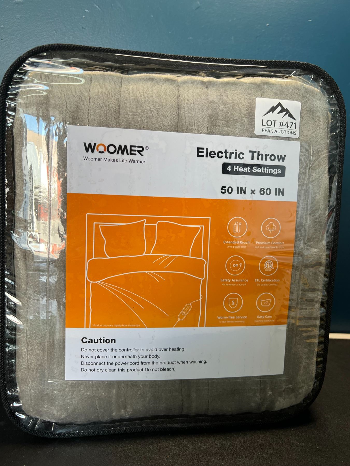 Lot of 1 Electric Heated Throw Blanket - Grey - 50 x 60 inch