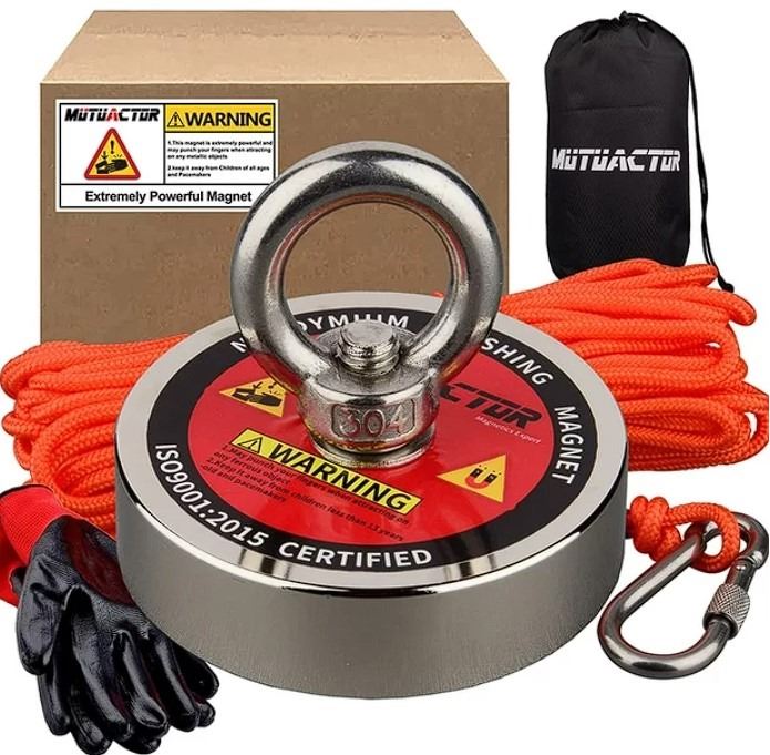 Lot of 1 Fishing Magnet Set - 700lbs w/ 20m Orange Rope