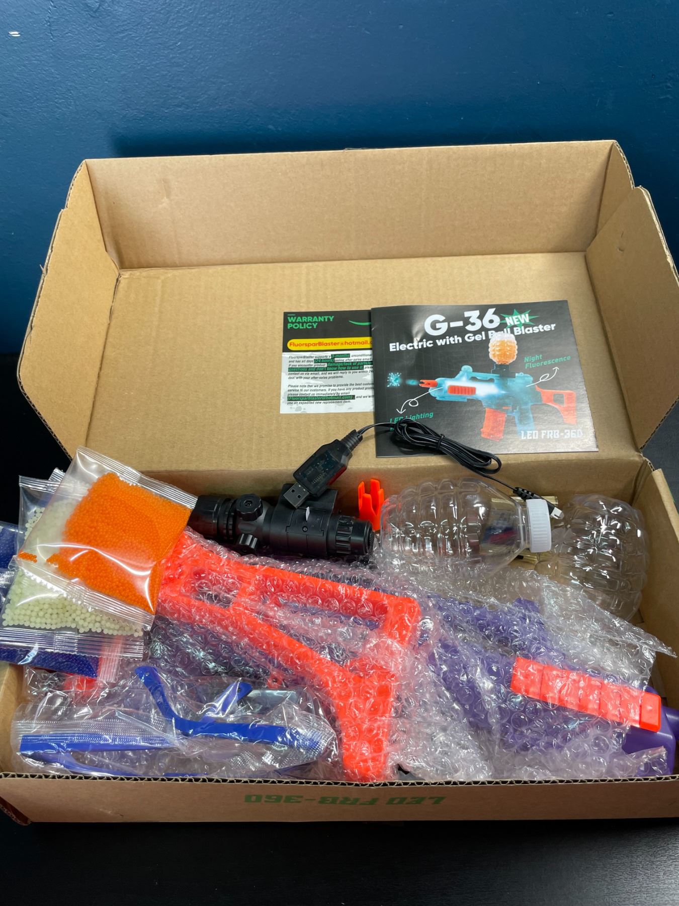 Lot of 1 G36 Automatic/Electric Ball Blaster Gun Toy - Glow In The Dark Purple w/ Lighting Effects!