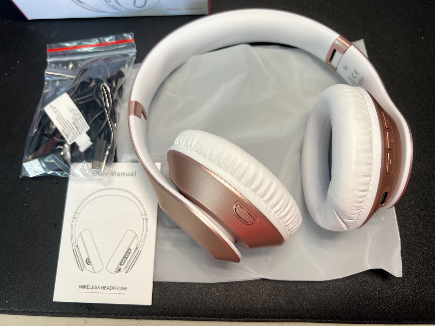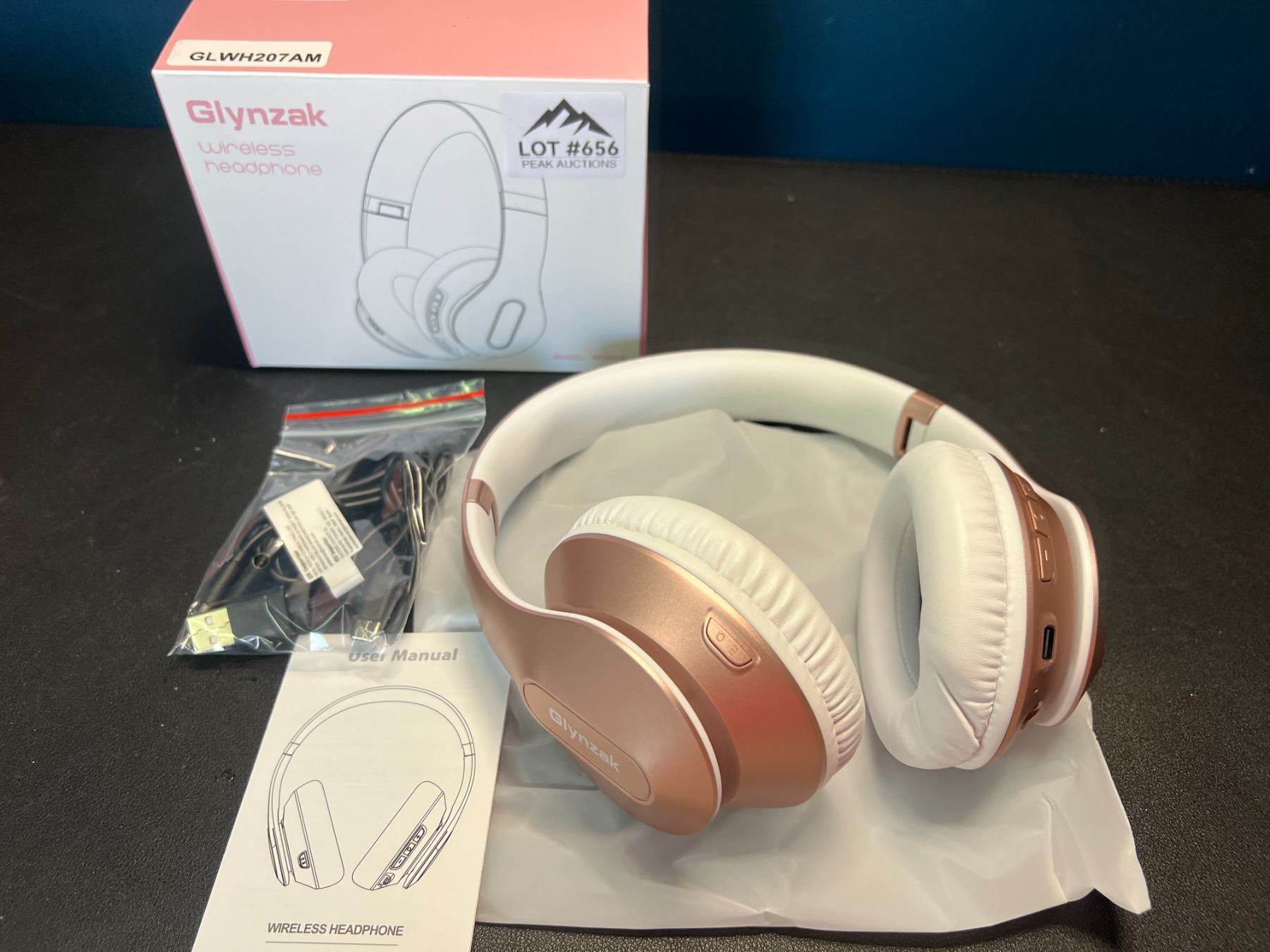 Lot of 1 Glynzak Wireless Bluetooth Over Ear Headphones - 65hr music/talk time! - Rose Gold