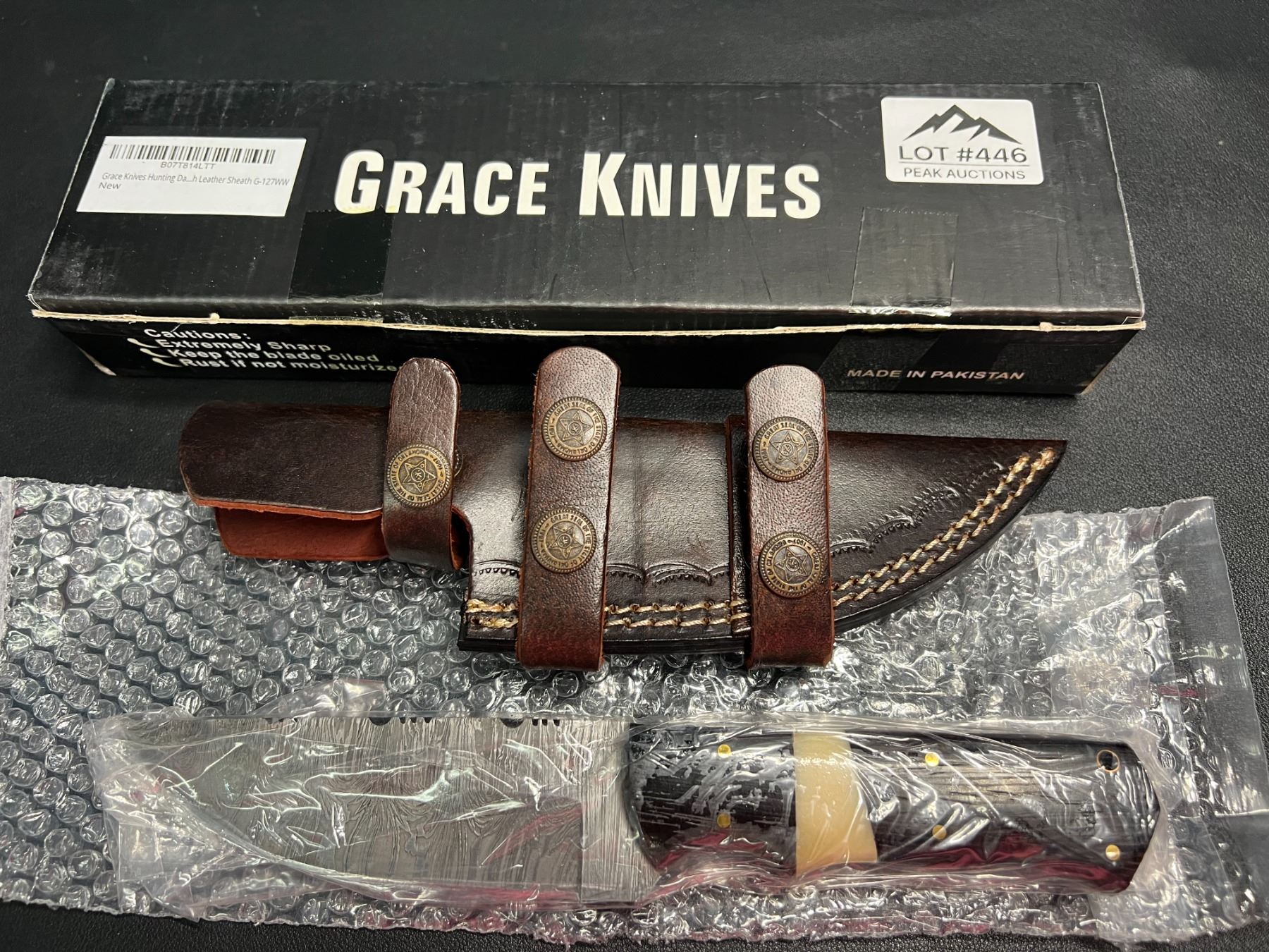 Lot of 1 Grace Knives 9" Damascus Steel Hunting Knife w/ Leather Sheath (G-127 WW)
