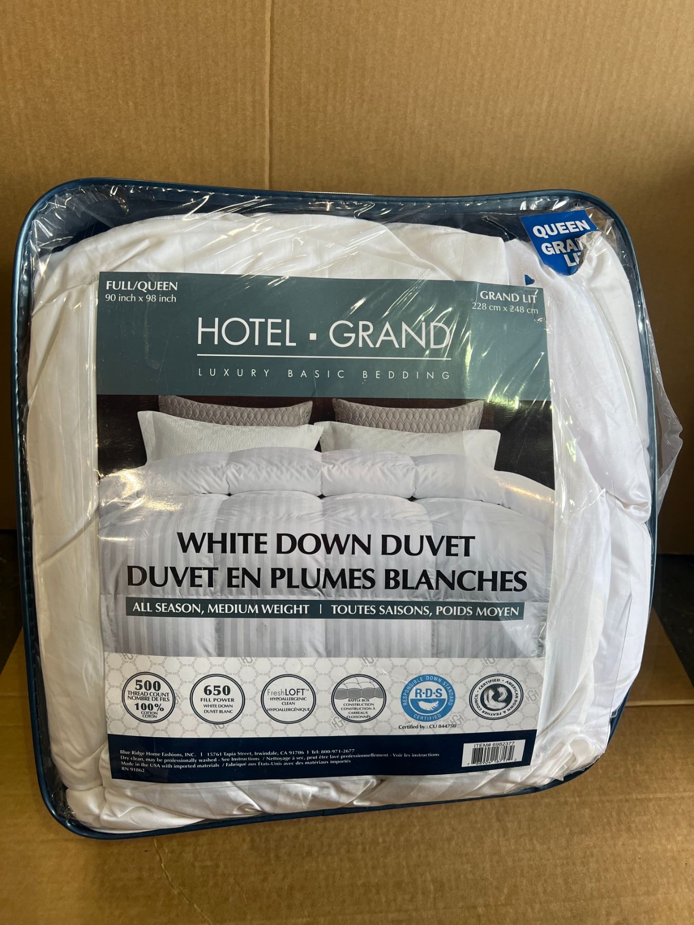 Lot of 1 Hotel Grand White Down Duvet - Queen Size - All Season, Medium Weight White Duvet