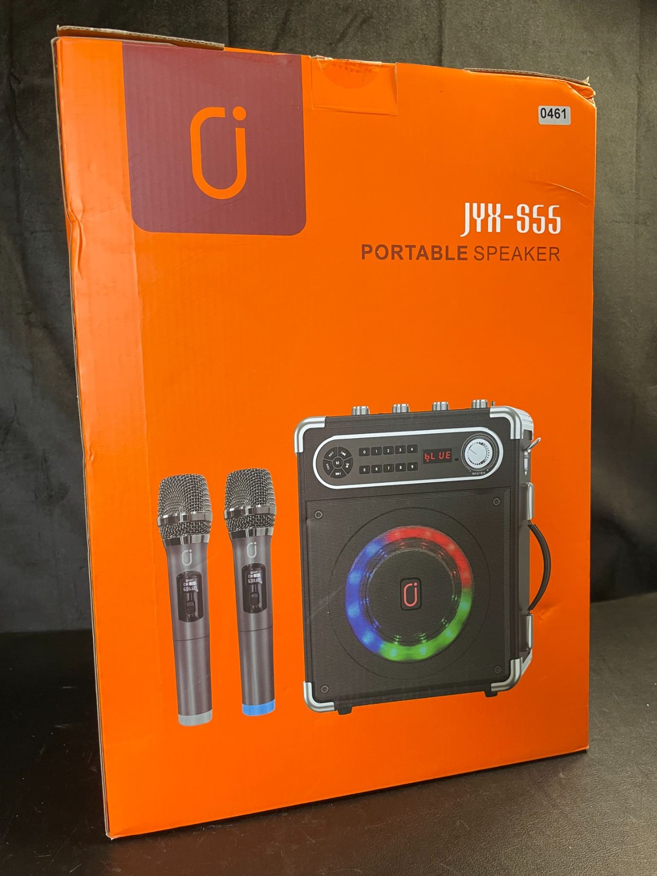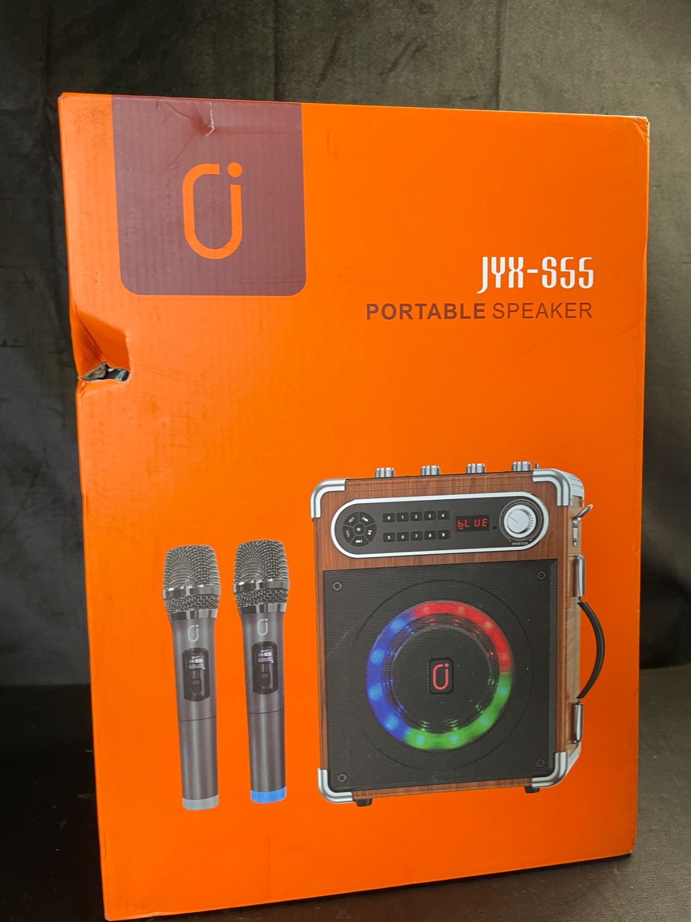 - JYX Karaoke Machine with Two Wireless Microphones, Portable Bluetooth Speaker with Bass/Treble Adjustment, PA System with Remote Control, LED Lights, Supports TF Card/USB, AUX IN, FM, REC,TWS for Party/Church, etc.