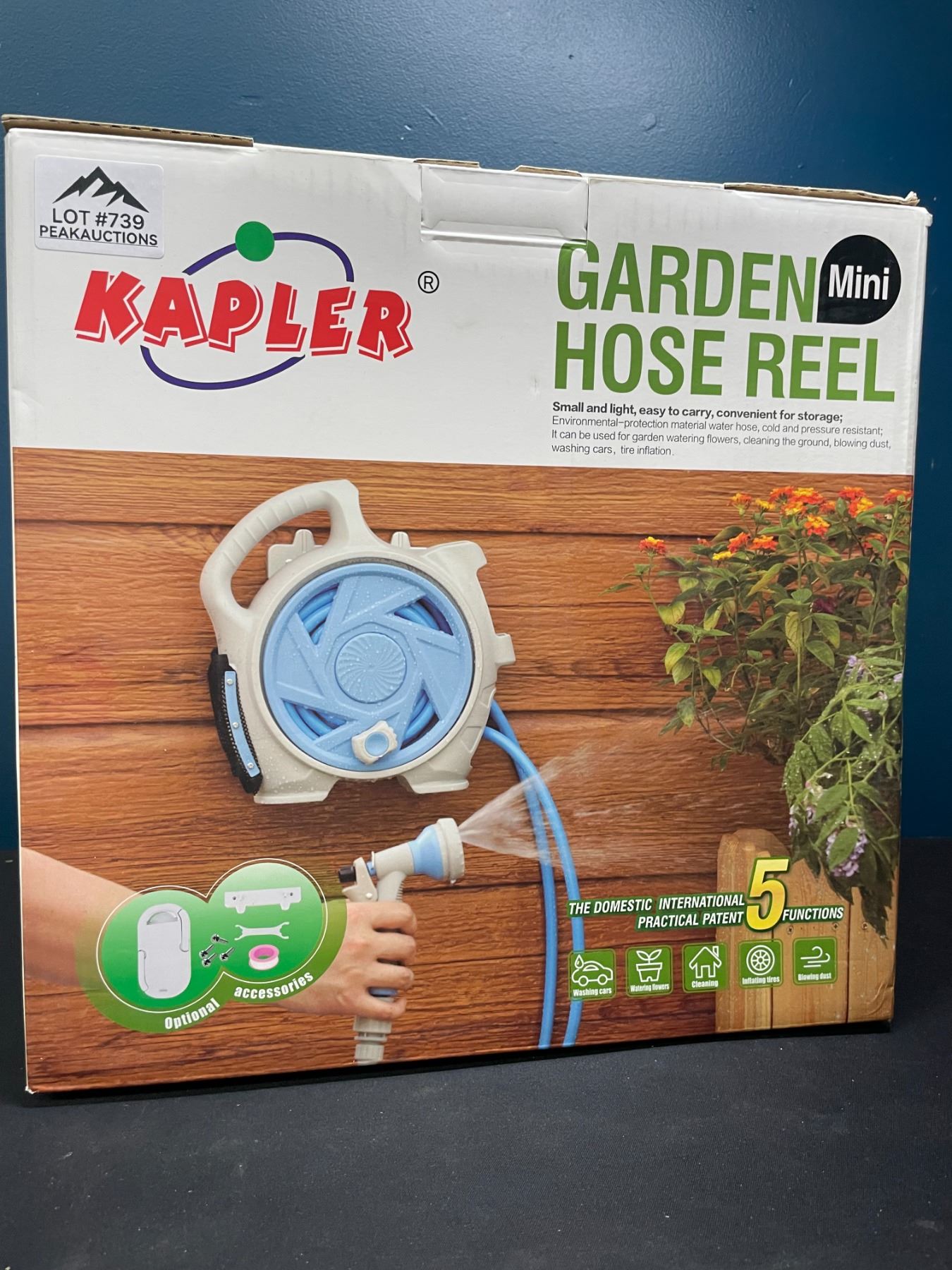 Lot of 1 Kapler 50FT Portable Retractable Water Hose Reel with 7 Sprayer Modes, Nozzle, & Mount