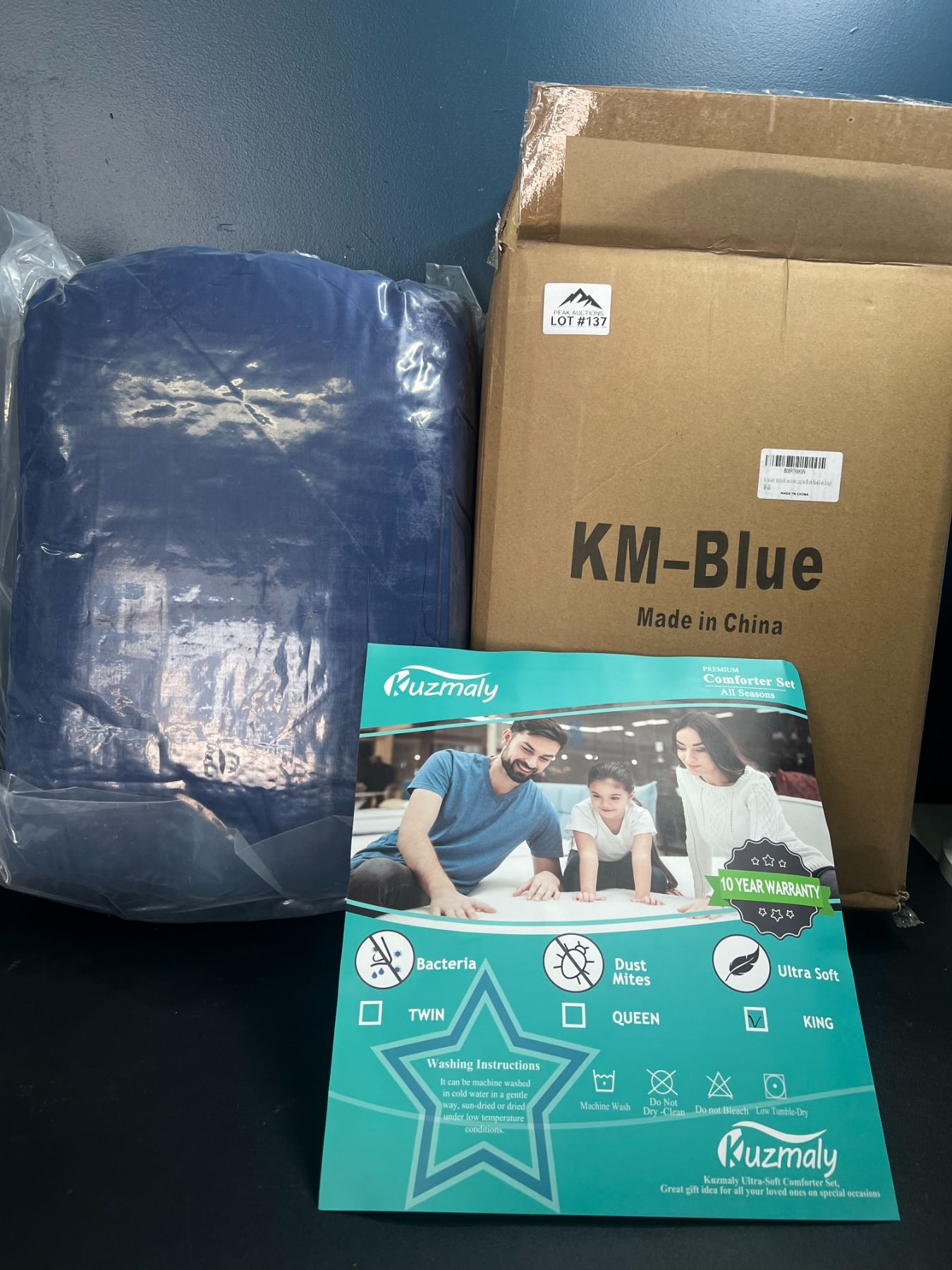 Lot of 1 King Size Ultra-Soft Comforter - Dark Blue/Gray - 90 inch x 104 inch