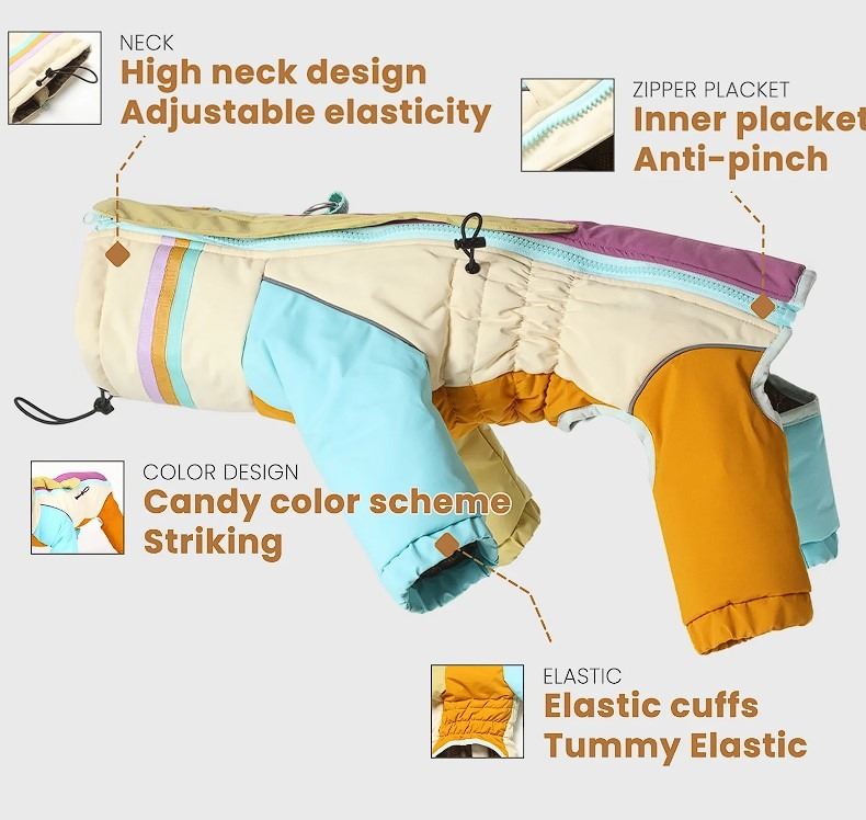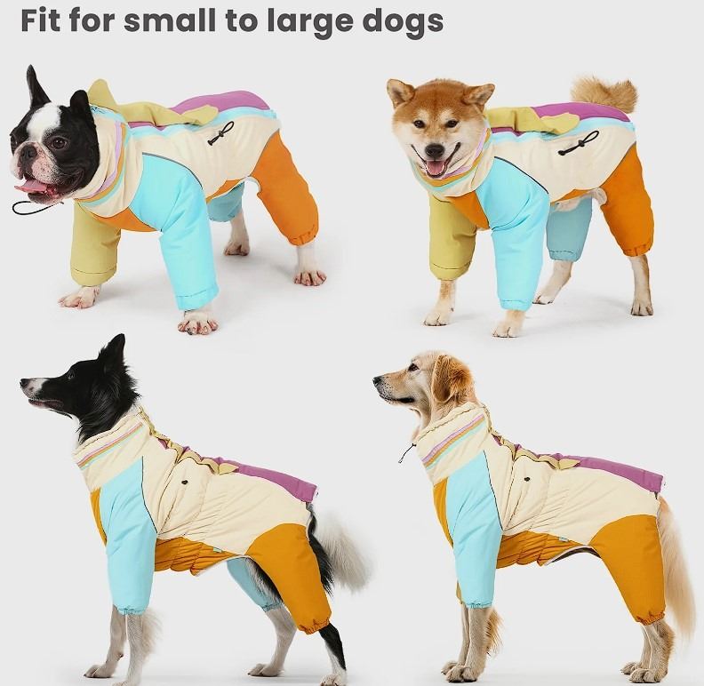 - waterproof and inner lined to keep dogs warm and protect them from rain, snow/wet weather