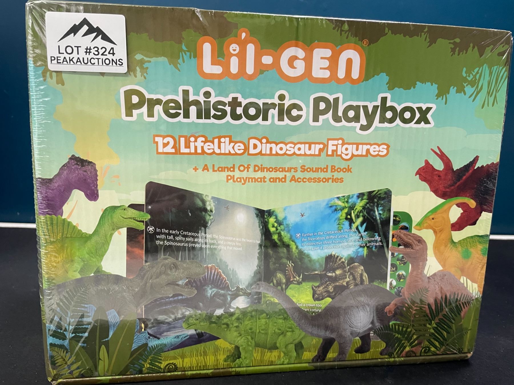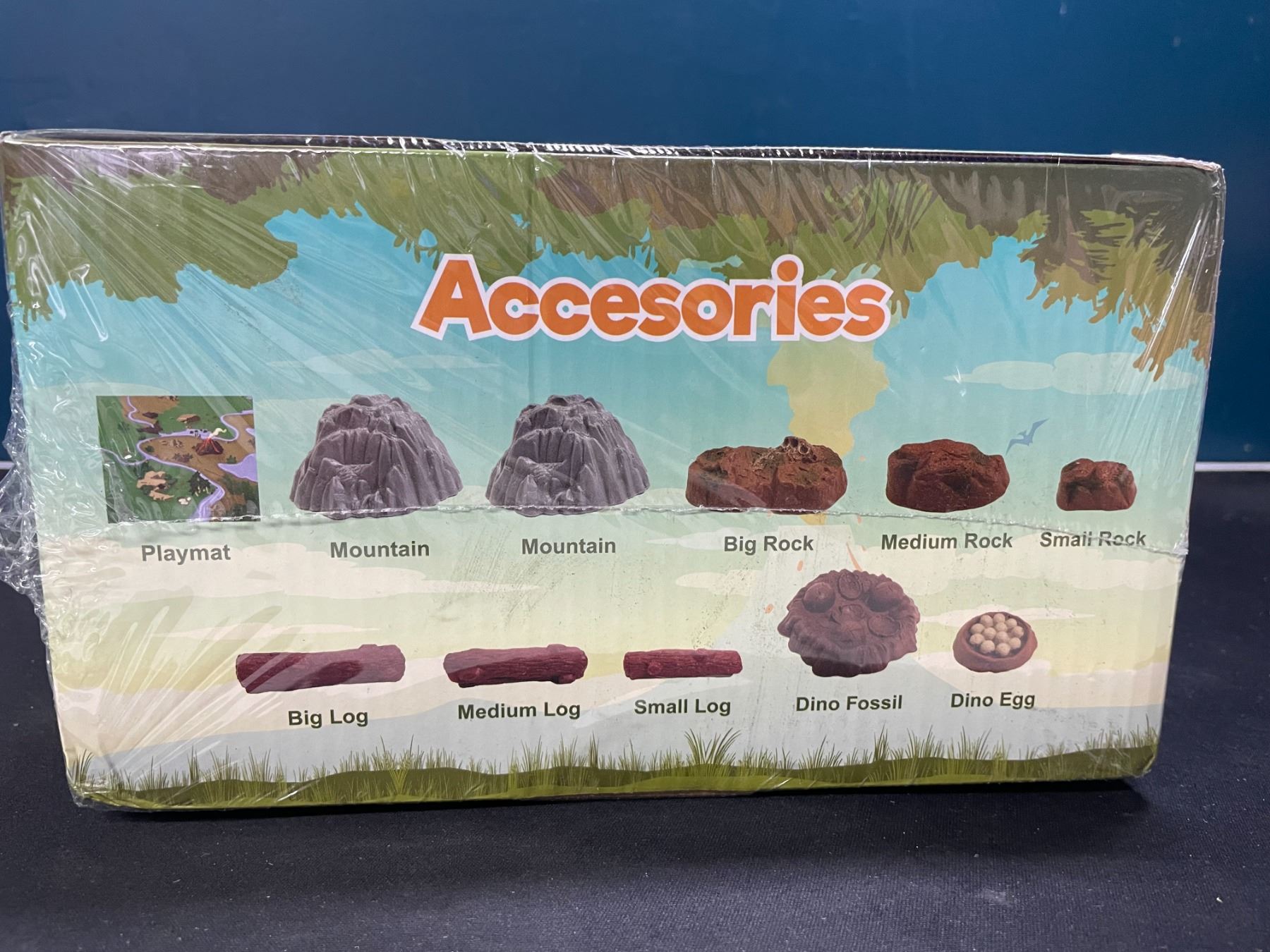 - dinosaur toy play set; includes 12 Lifelike dinosaur figures, dinosaur sound book, playmat, and accessories!