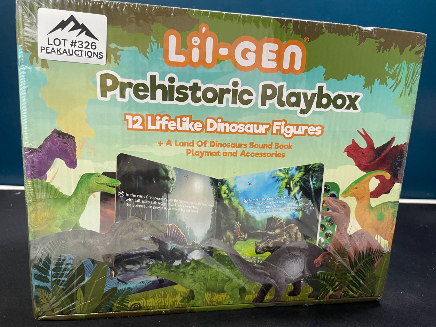 - dinosaur toy play set; includes 12 Lifelike dinosaur figures, dinosaur sound book, playmat, and accessories!