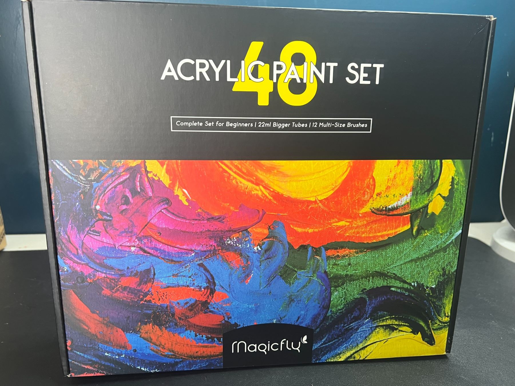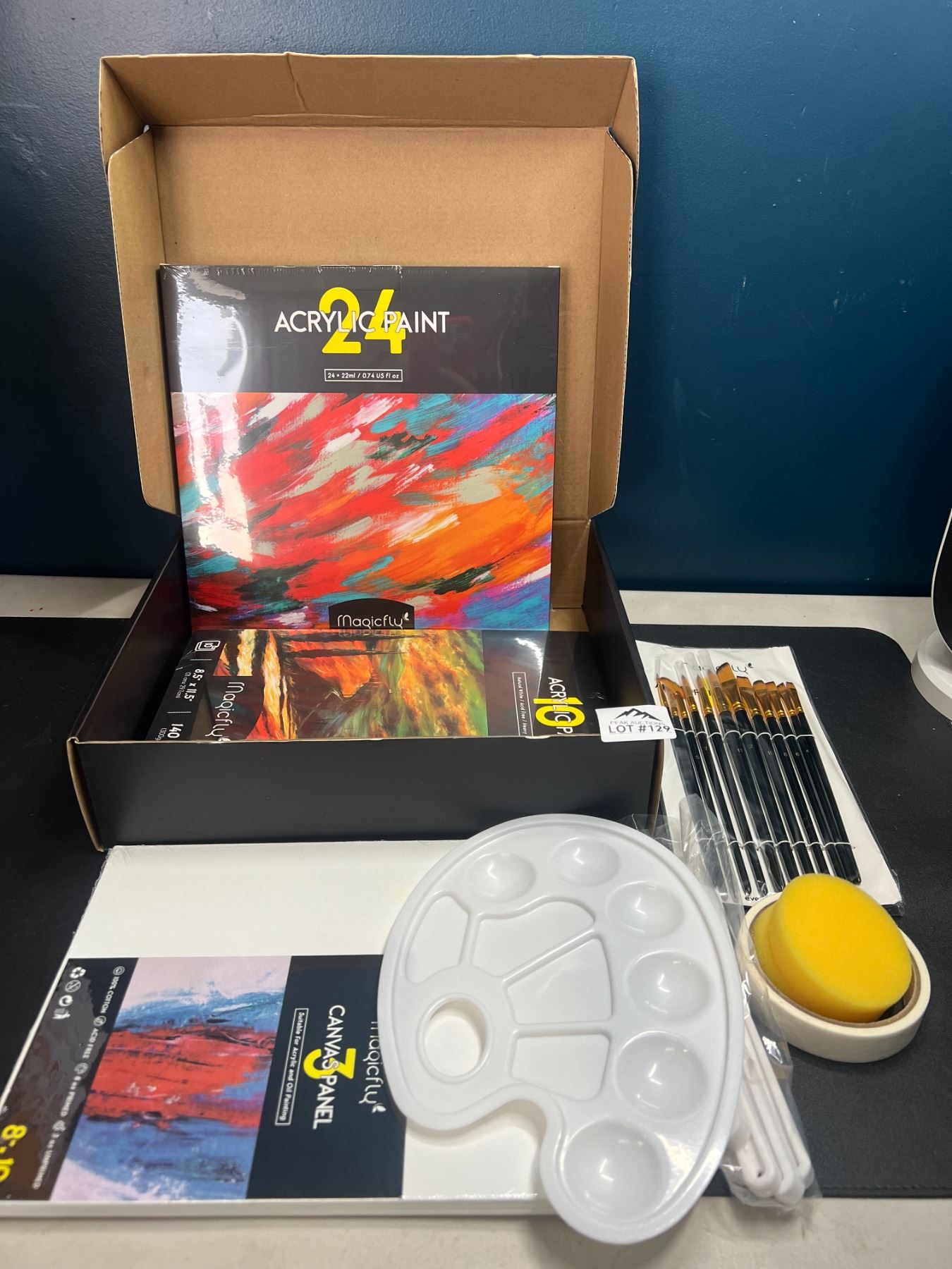Lot of 1 Magicfly 24PC Acrylic Paint Set w/ 24 Colours, Brushes, 3 Canvases, 1 Palette, & More