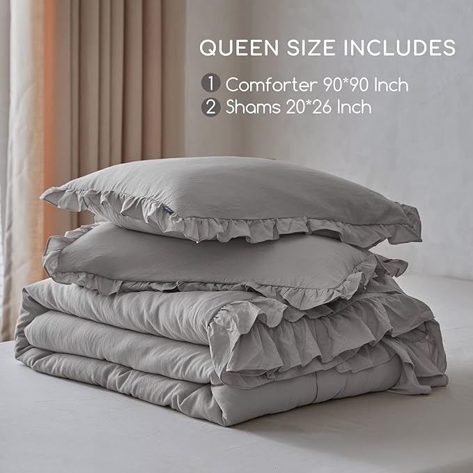 - 3PC Set - includes a queen size comforter (90*90 inches) and two shams (2*20*26 inches)