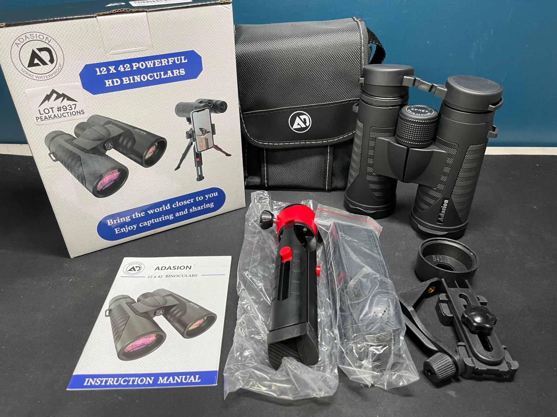 Lot of 1 Pair of 12x42 Powerful HD Binoculars w/ Tripod Stand & Case