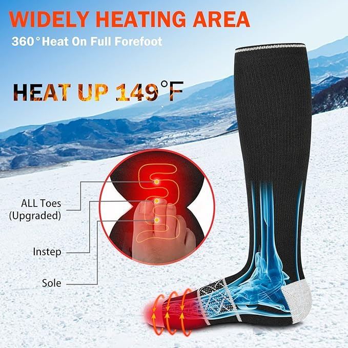 - Heated Socks, 2600mAh 7.4V Rechargeable Battery Thermal Foot Warm Heating Sock for Cold Winter Men Women Kids (Large)