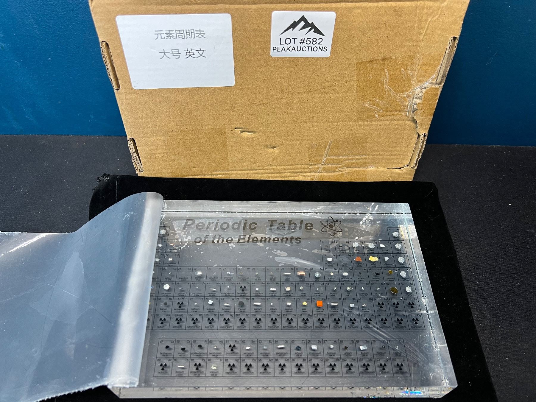 Super cool display shows actual tiny fragments and samples from the periodic table.