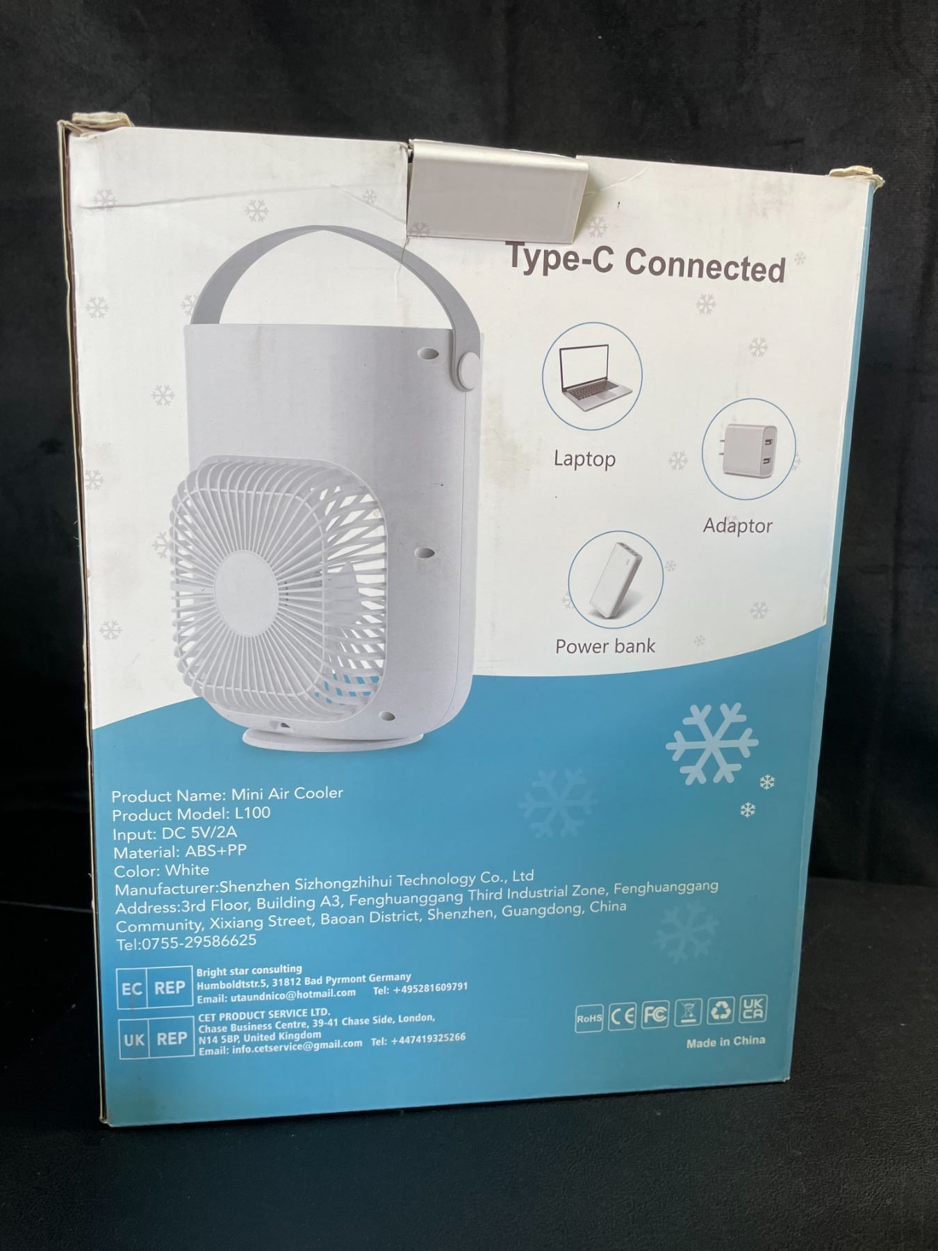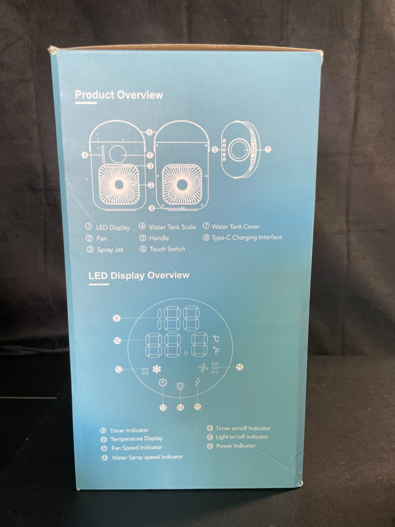- large 1000ml capacity water tank; add water for "misting"/faster cooling