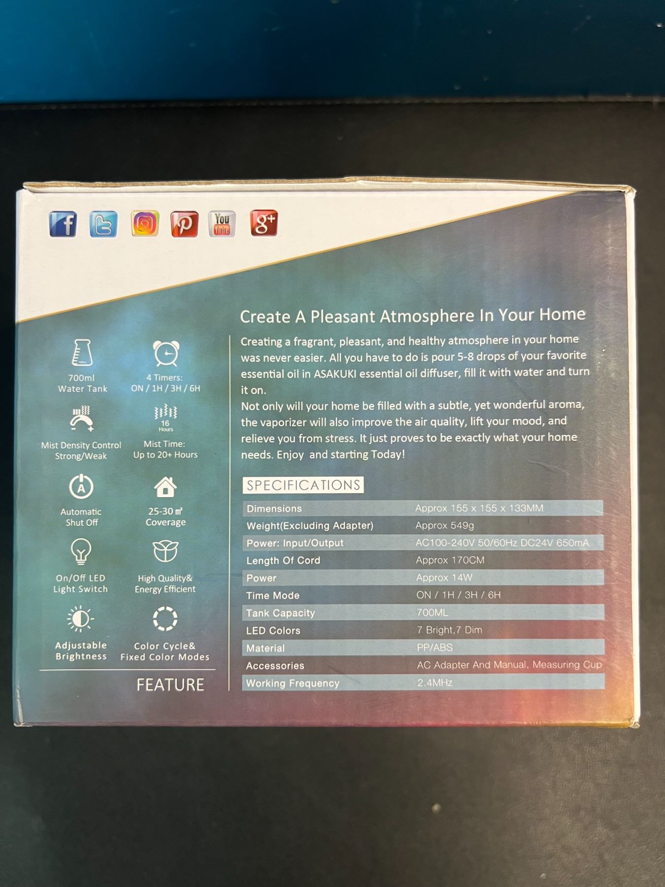 Lot of 1 Premium Essential Oil Diffuser - 700ML Capacity