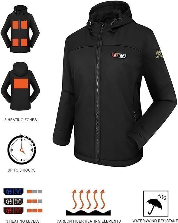 - 3 heating levels, up to 8hrs of continuous use per charge