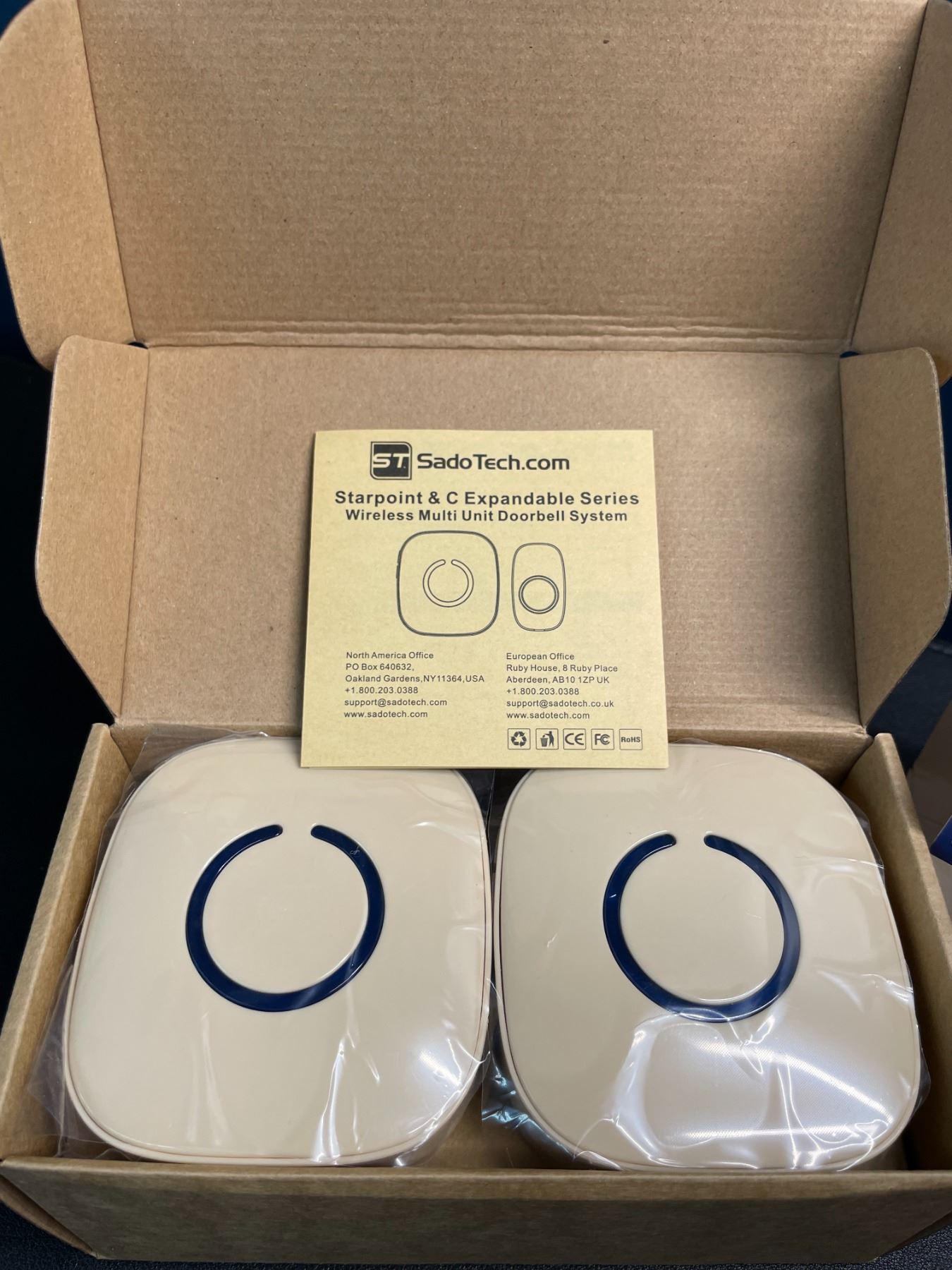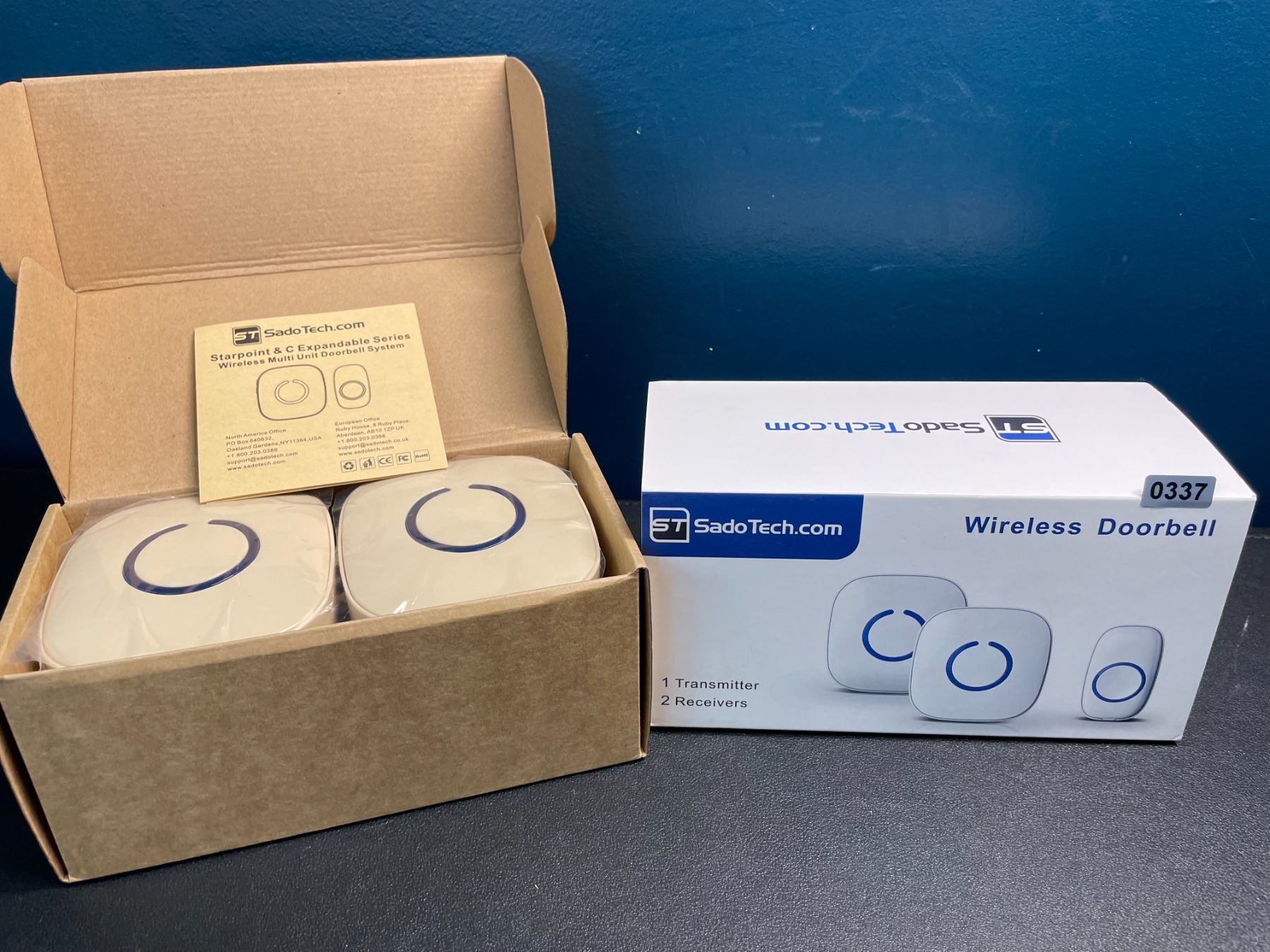 - wireless doorbell kit/system with 1 transmitter & 2 receivers