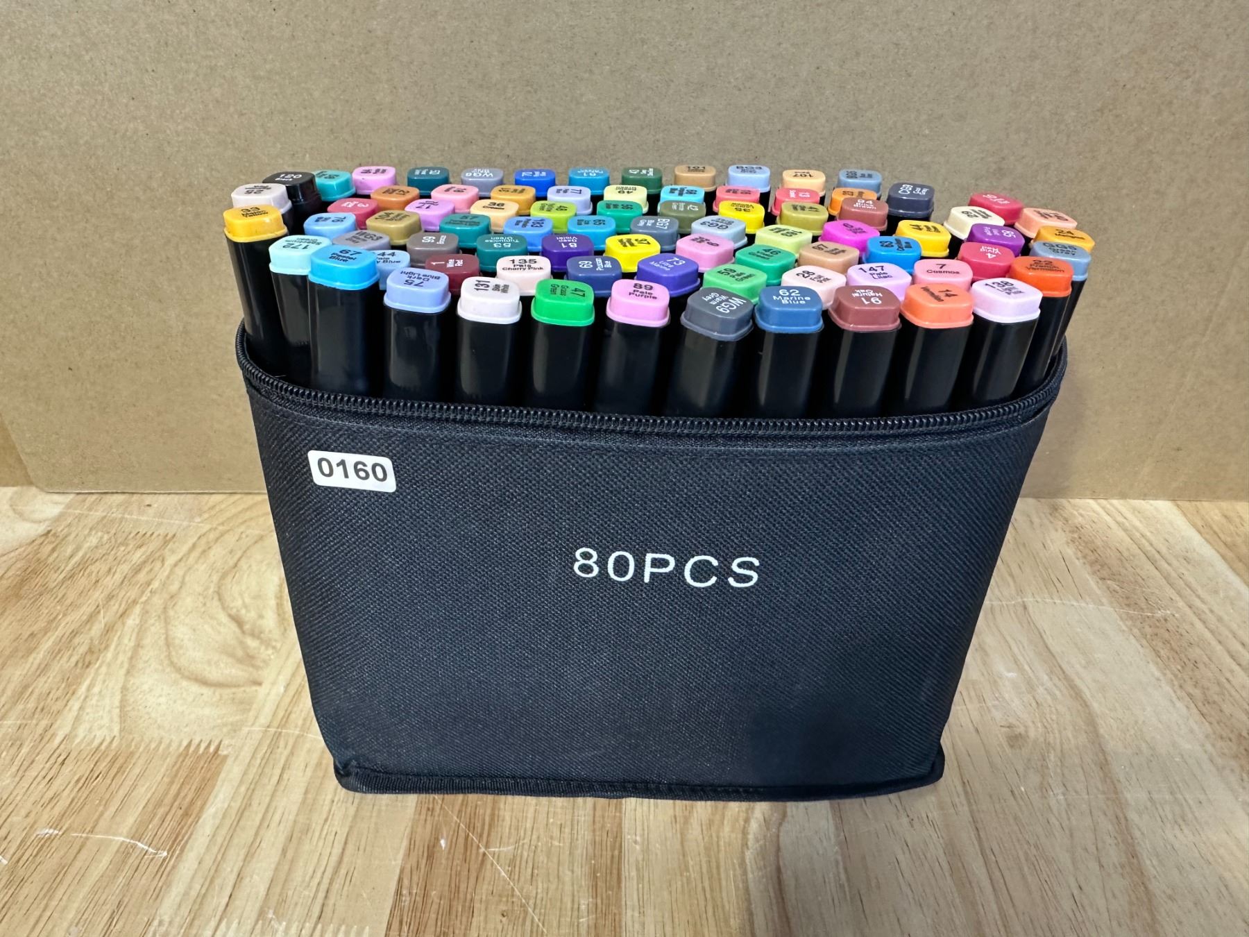 80 felt pens with 2 sides, one side is fine top and the other broad tip
