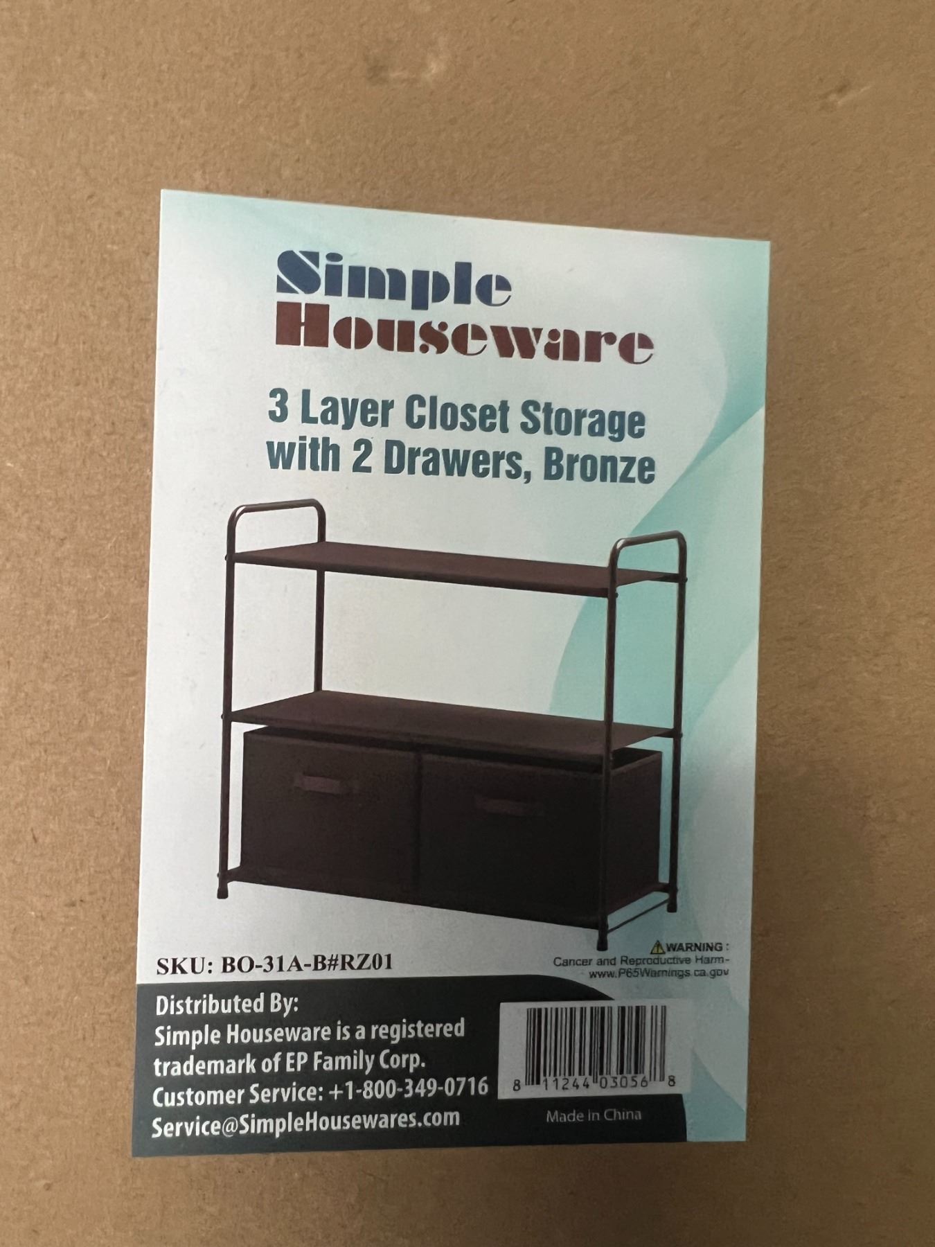 Lot of 1 Simple Houseware 3-Layer Closet Storage Organizer w/ 2 Drawers - Bronze