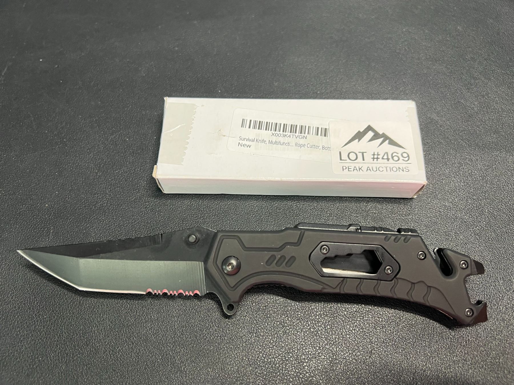 Lot of 1 Tactical/Survival Multifunctional Folding Knife - Black - w/ Rope Cutter/Bottle Opener