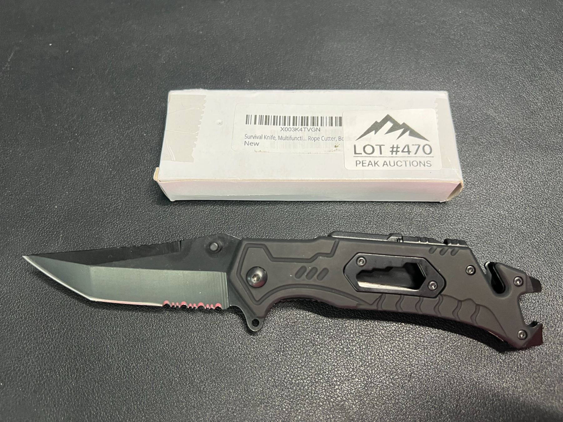 Lot of 1 Tactical/Survival Multifunctional Folding Knife - Black - w/ Rope Cutter/Bottle Opener