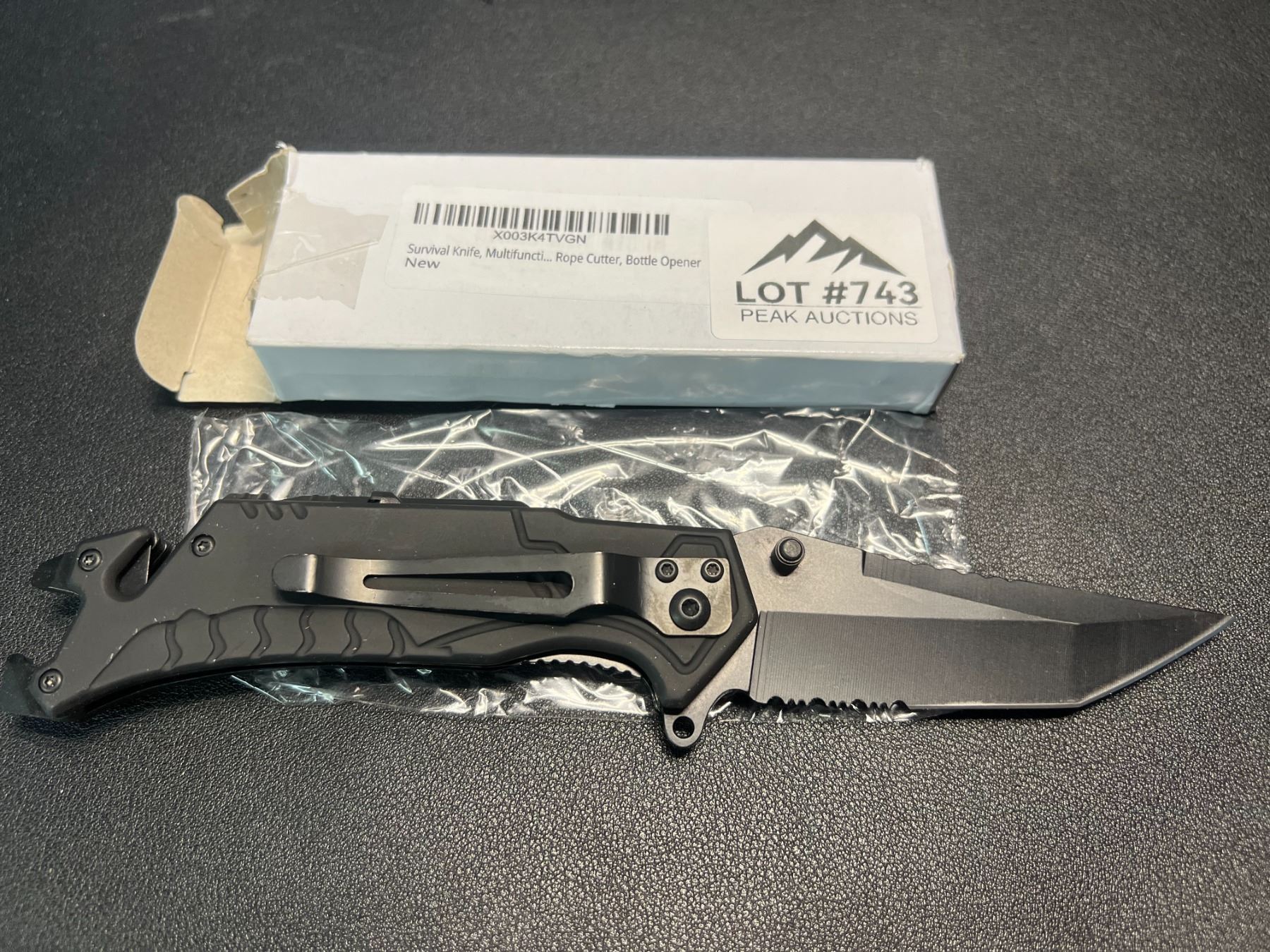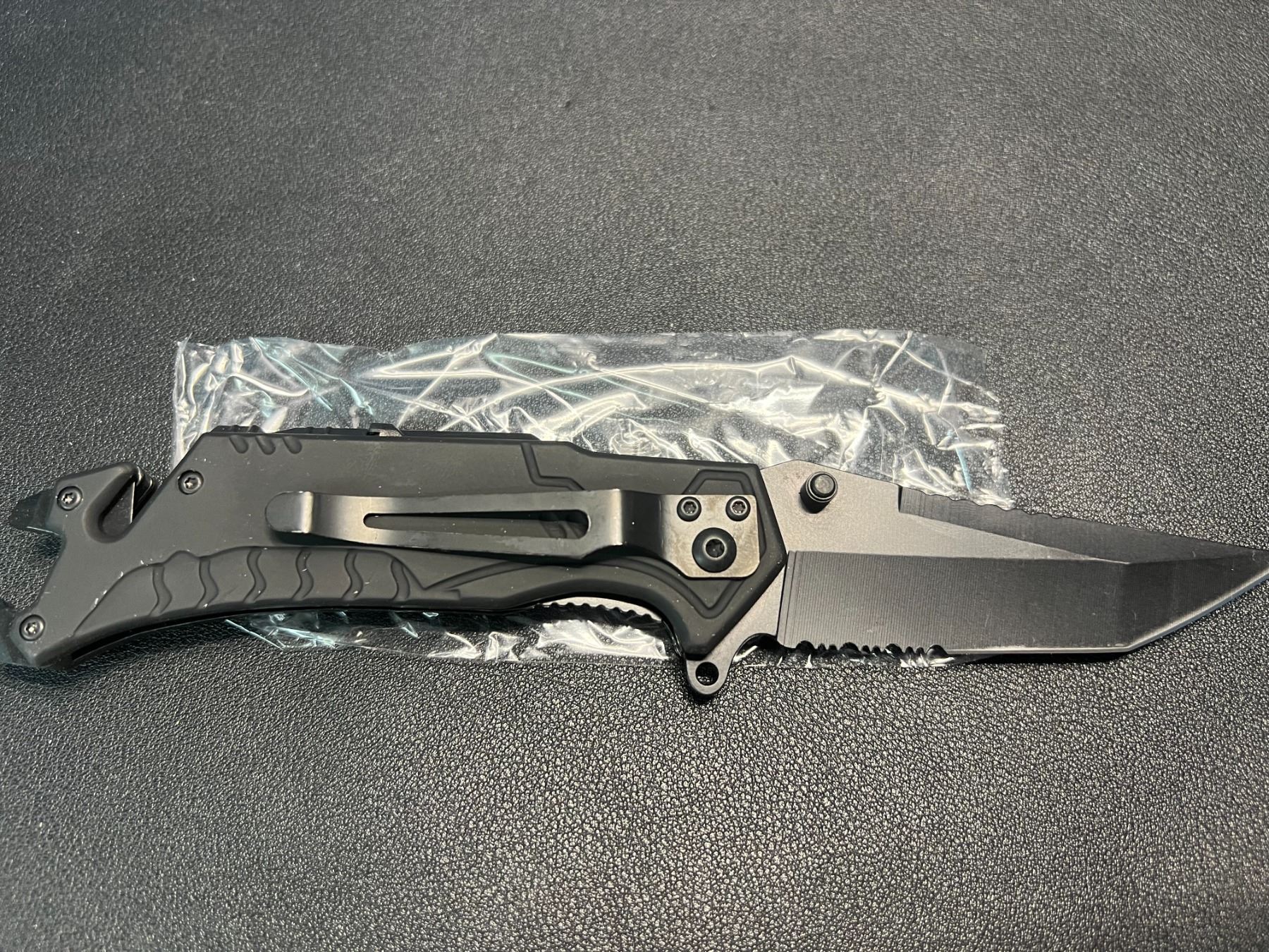 Lot of 1 Tactical/Survival Multifunctional Folding Knife - Black - w/ Rope Cutter/Bottle Opener