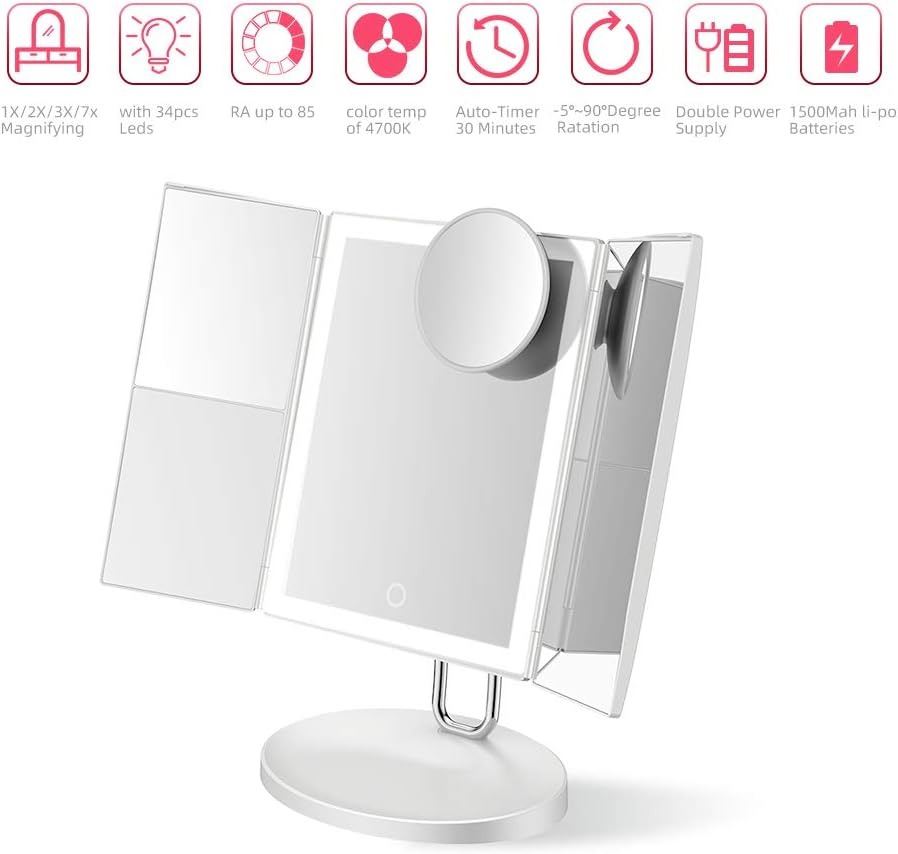 - touchbeauty LED Trifold Makeup Vanity Mirror