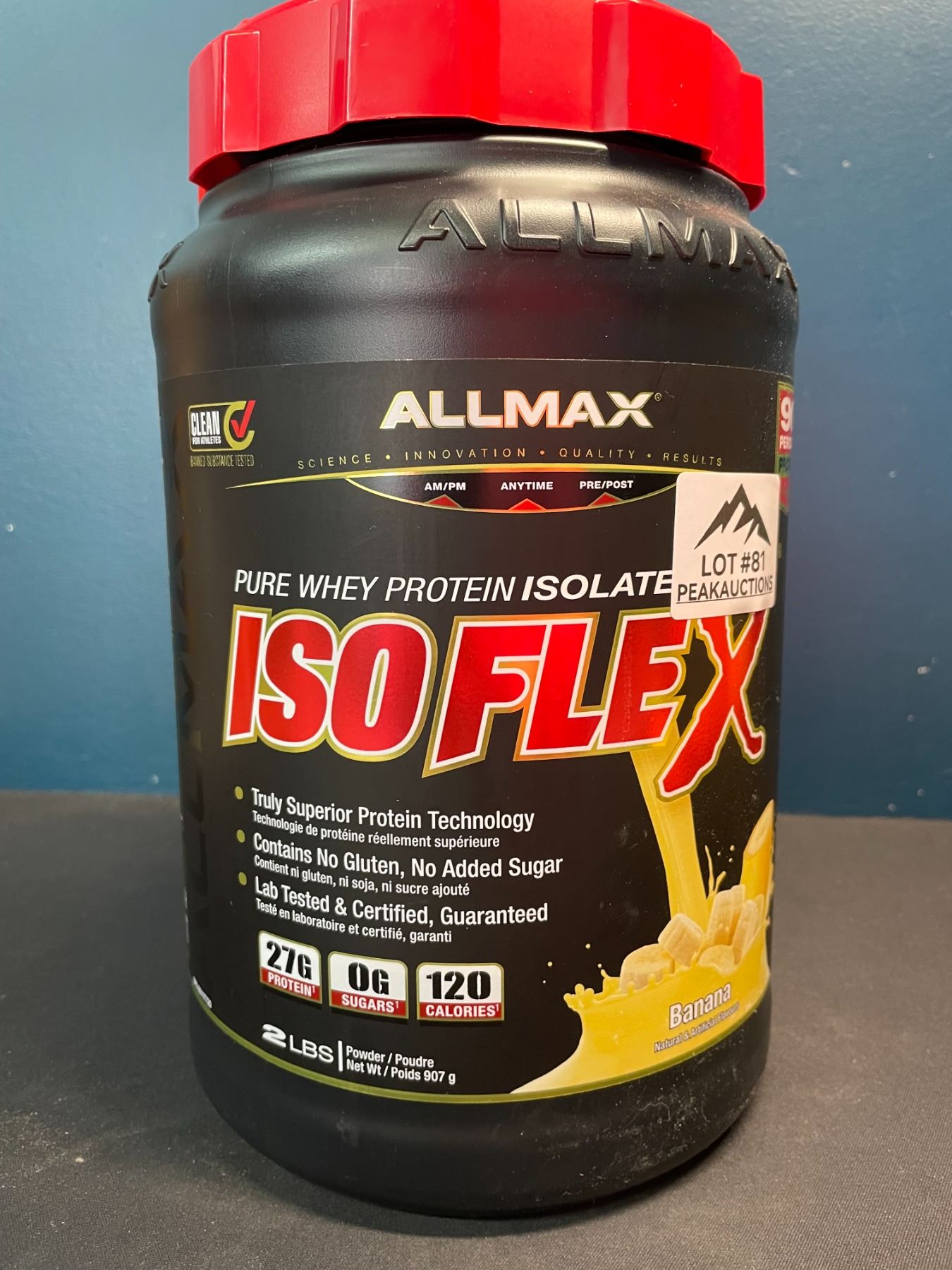 Lot of 1 Tub of AllMax Pure Whey Protein Isolate Powder - ISOFLEX - Banana - 2lb Tub