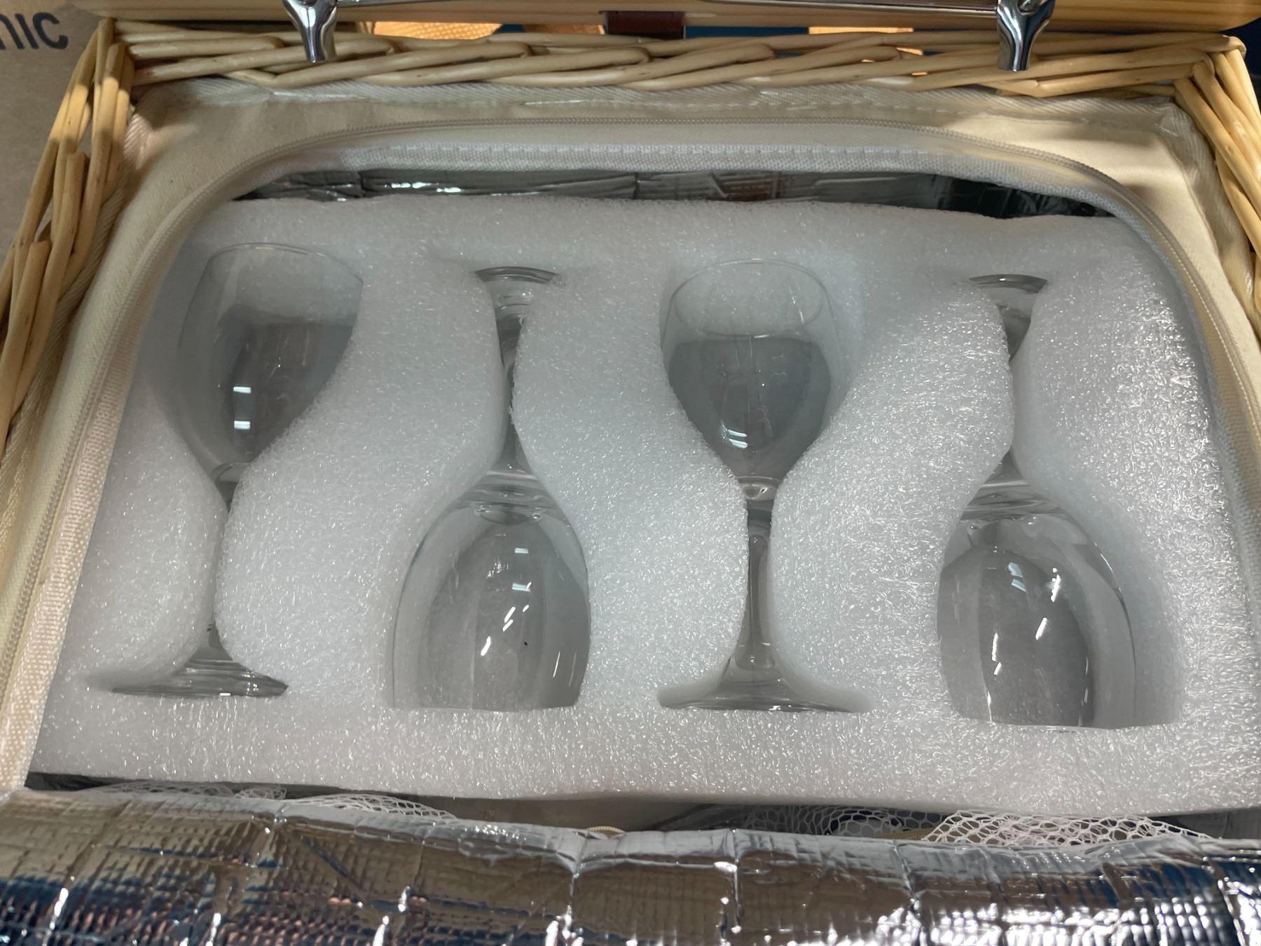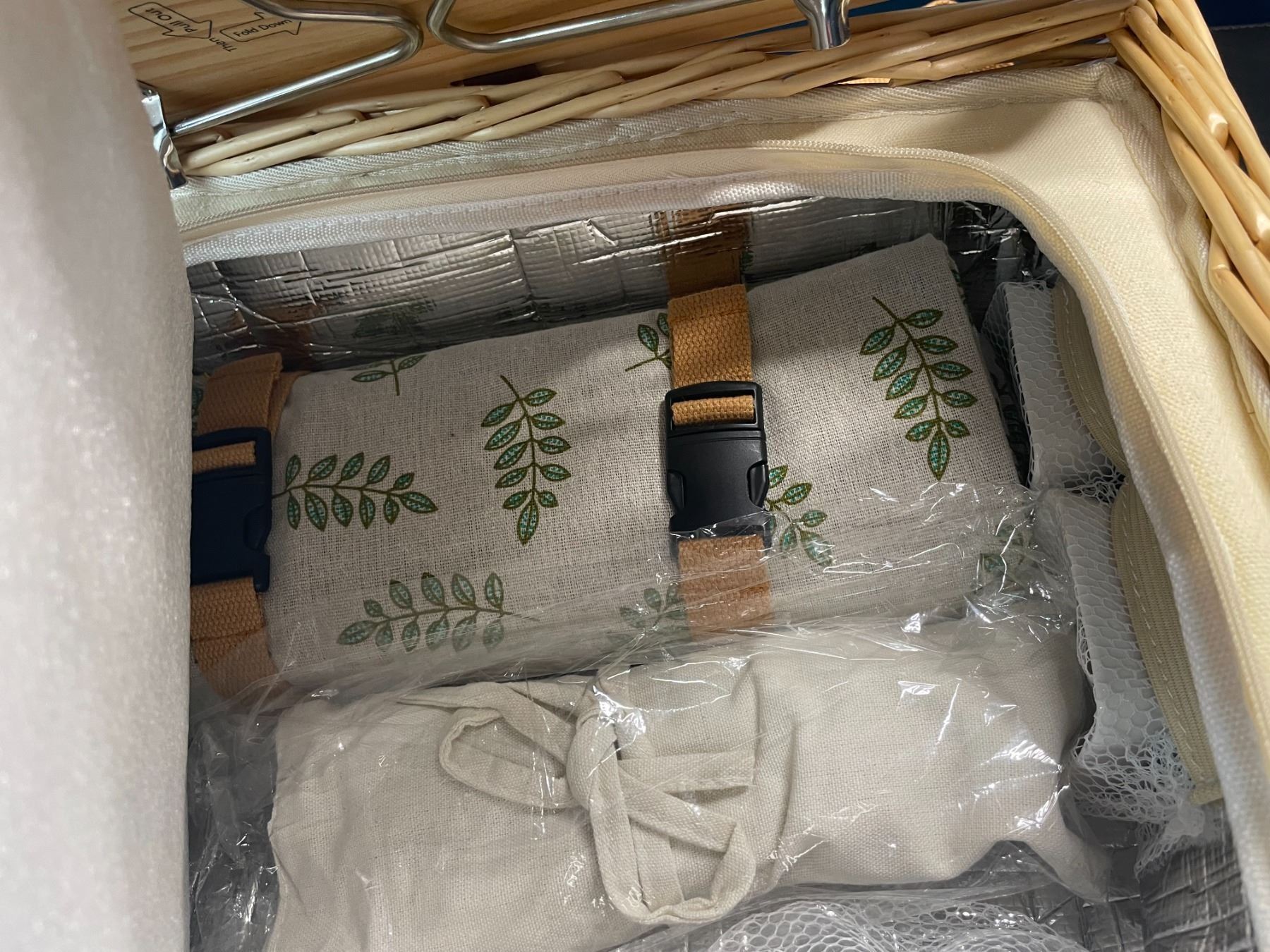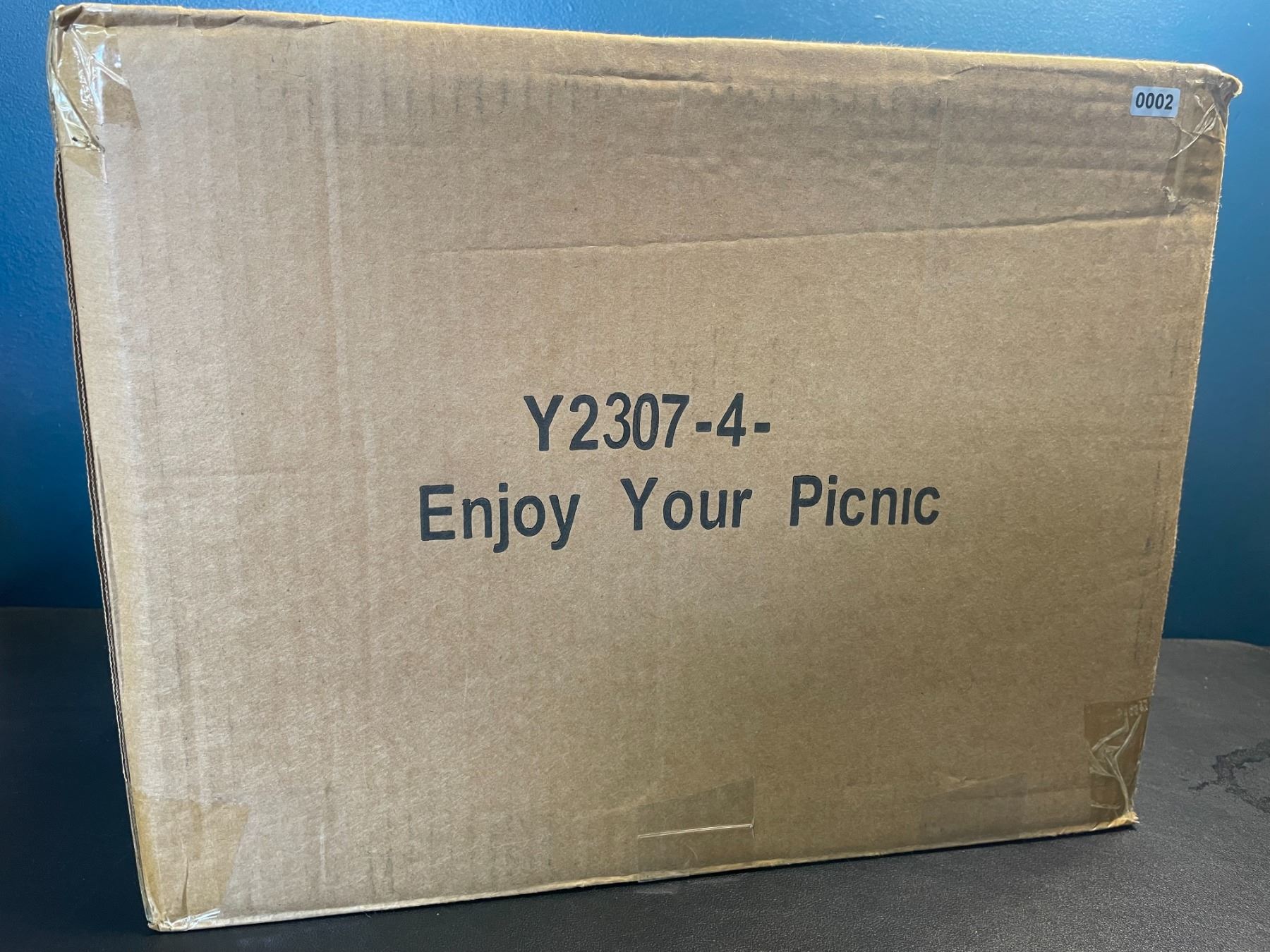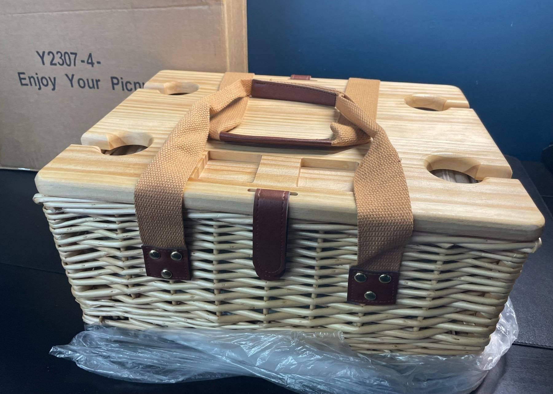 - Hap Tim Wicker Picnic Basket Set for 4 with Mini Folding Wine Picnic Table & Large Insulated Cooler Bag & Cutlery Service Kits for 4 Persons