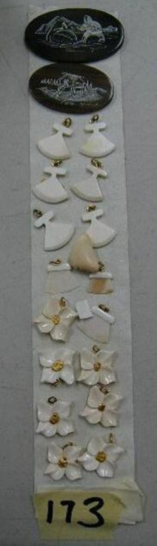 Lot of: 10 Ulus / 2 Baleen Pieces 7 Ivory Flower (555)