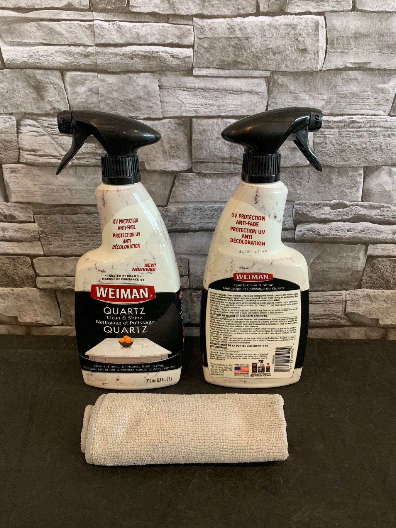 Lot of 2 - 710ml Weiman Quartz Clean & Shine With Micro Fiber Cloth