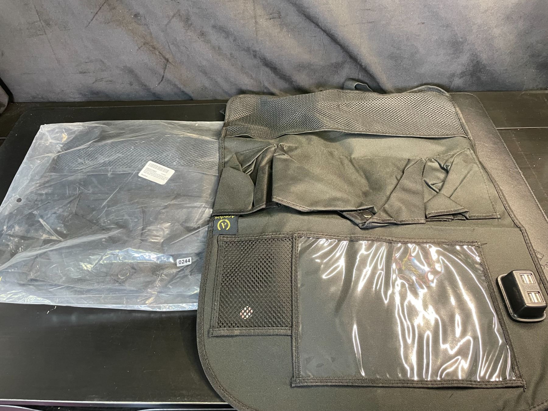 - organizes and cleans up backseats; has 4 USB charge ports and clear pouch for placing kids tablets/ipads into