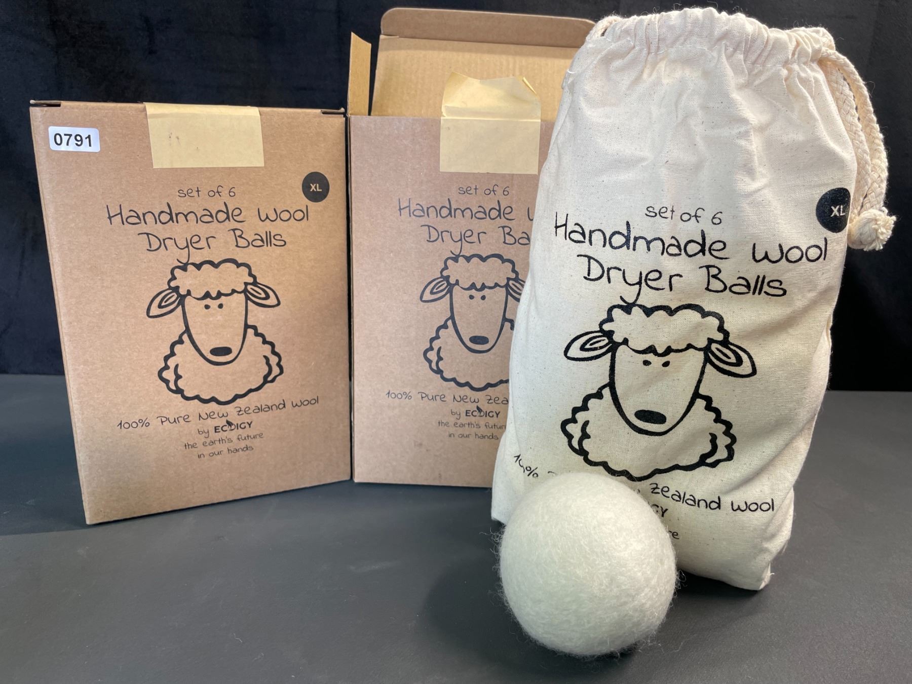 Lot of 2 Boxes of Handmade Wool Dryer Balls - Set of 6 Each - Brand New