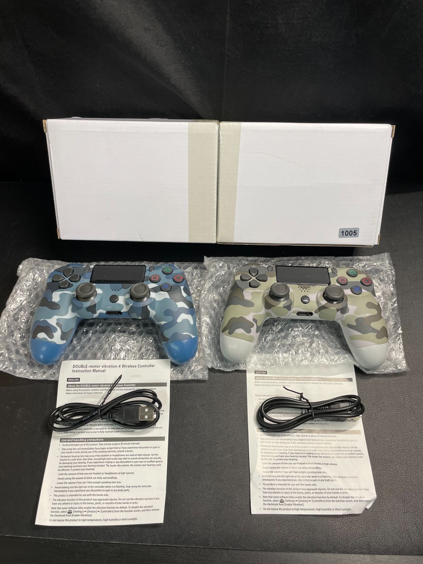 Lot of 2 Double-Shock Aftermarket Wireless Controllers for Playstation 4 - Camo Design