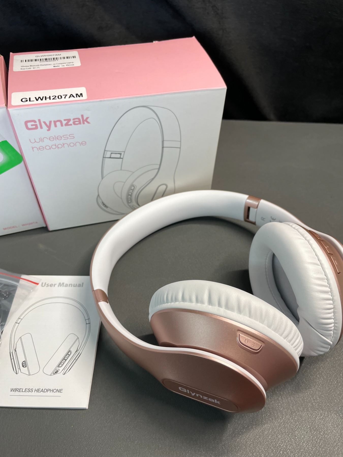Lot of 2 Glynzak Wireless Over-Ear Headphones w/ 65hr Music/Talk Time! Rose Gold - Brand New!