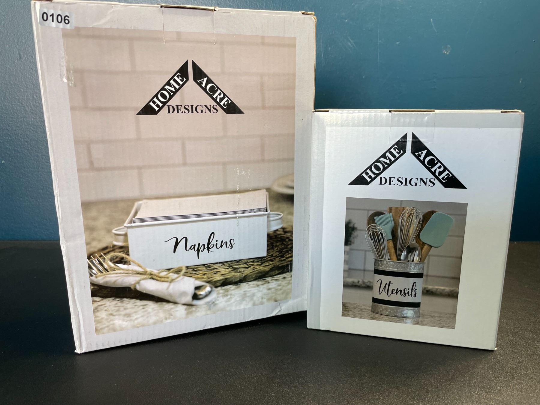Lot of 2 Home Acre Designs Products/Home Decor Pieces - Napkin holder & Utensil Holder - Brand New