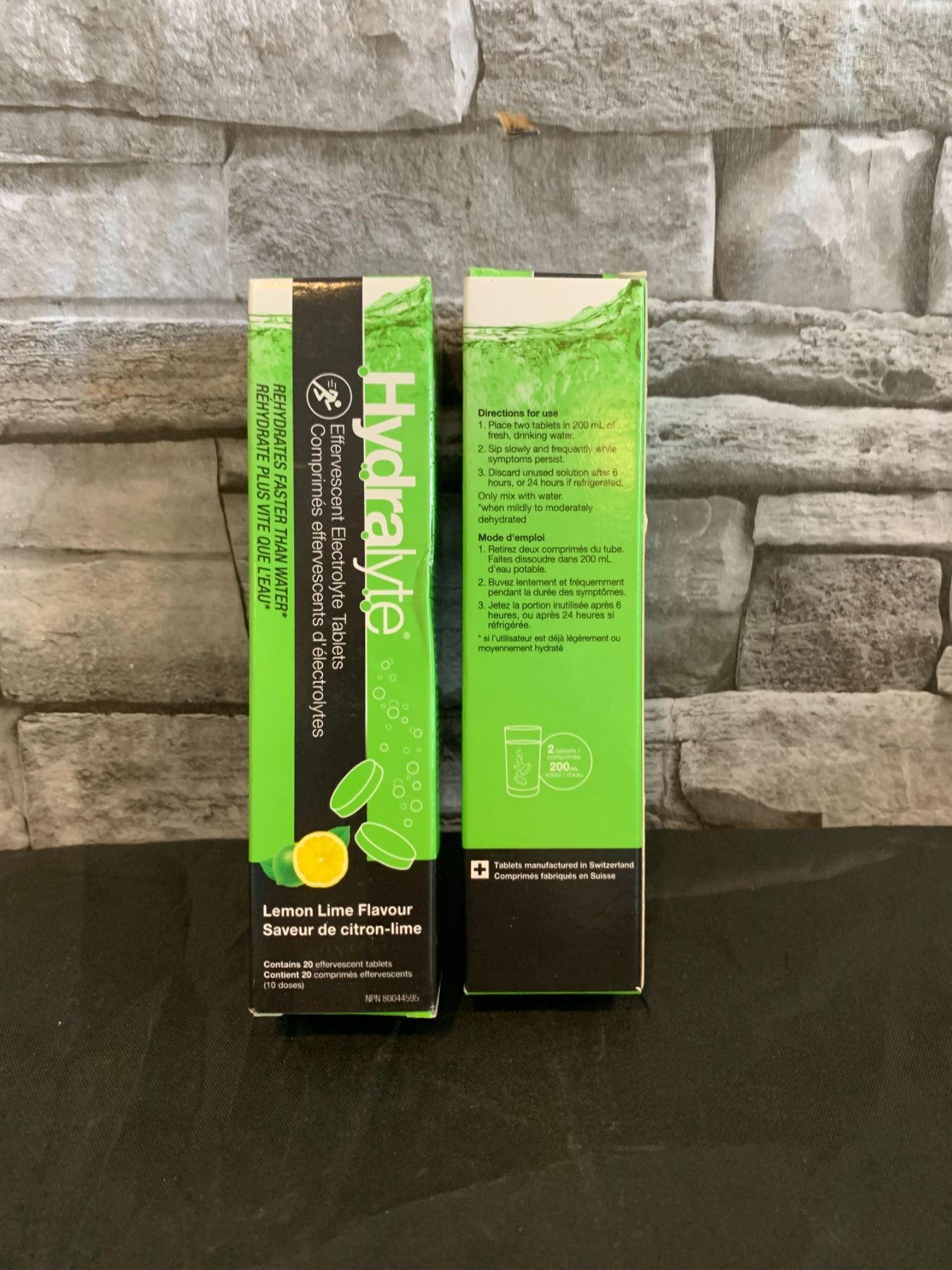 Lot of 2 - Hydralyte Electorlyte Tablets - 20 tabs per pack - Lemon Lime Flavour - BB: 12 - 2026