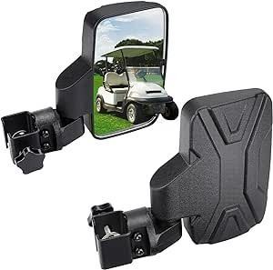 - kemimoto No Drilling Golf Cart Side Mirrors Universal Fit for 1.0"-1.25" Square Rail, Large Golf Cart Mirrors Compatible with EZGO, Club Car, Drive2, ICON, Kandi Electric Golf Carts, Black