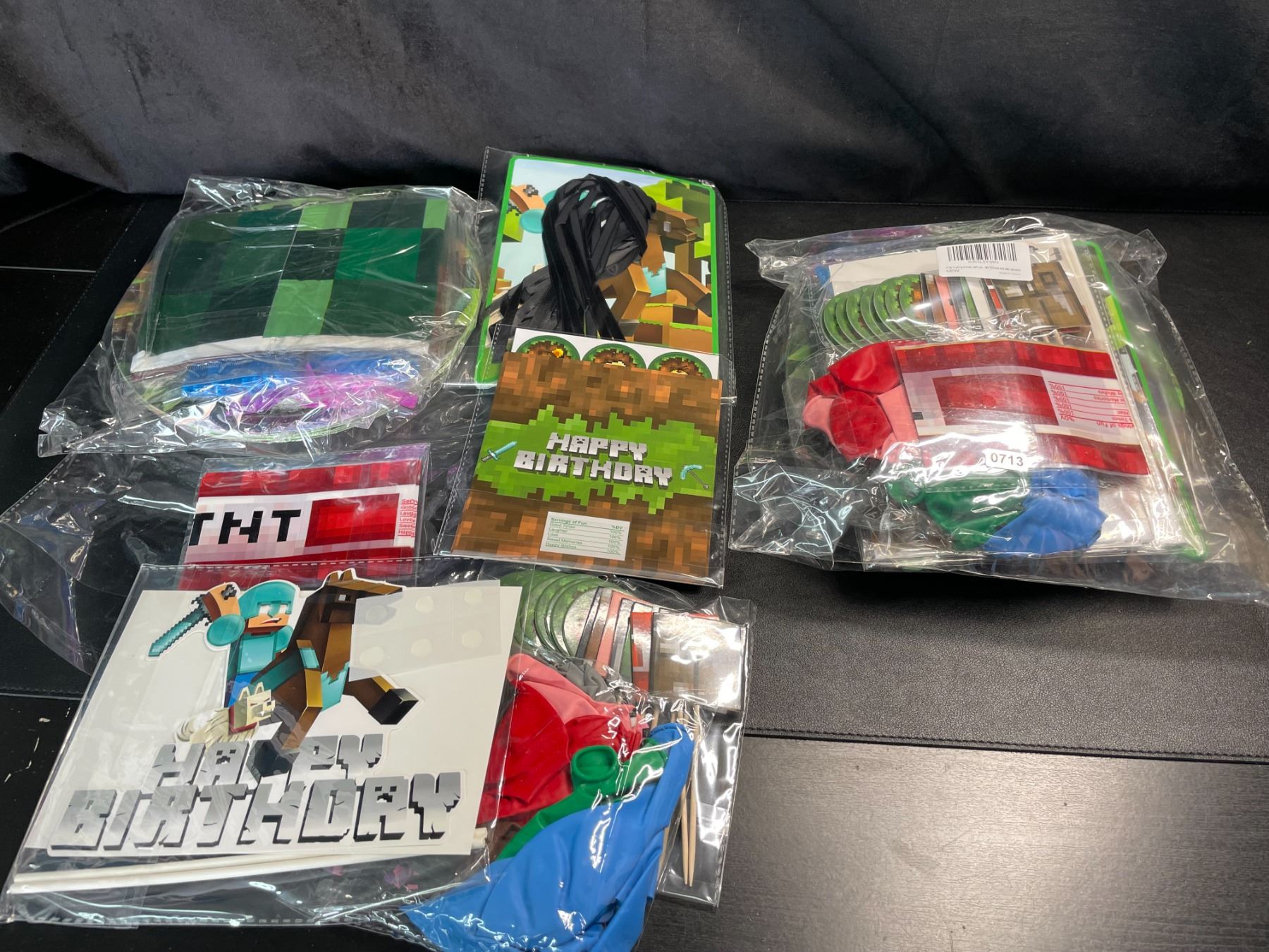 - includes various party supplies (e.g. balloons, tablecloth, napkins, cupcake toppers, etc.)